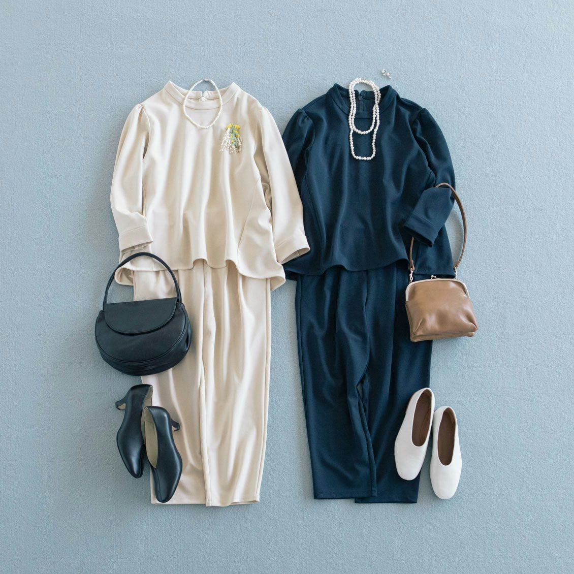 それぞれ組み合わせても相性抜群! ちょっぴり緊張するような晴れやかな日にも、さりげなく上品に大人の装いを叶えてくれるアイテムですよ。