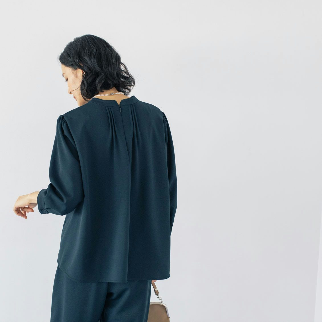 個人的にお気に入りなのが、後ろ姿。襟元のカーブや、ピンタックがきゅんとくるポイントです。