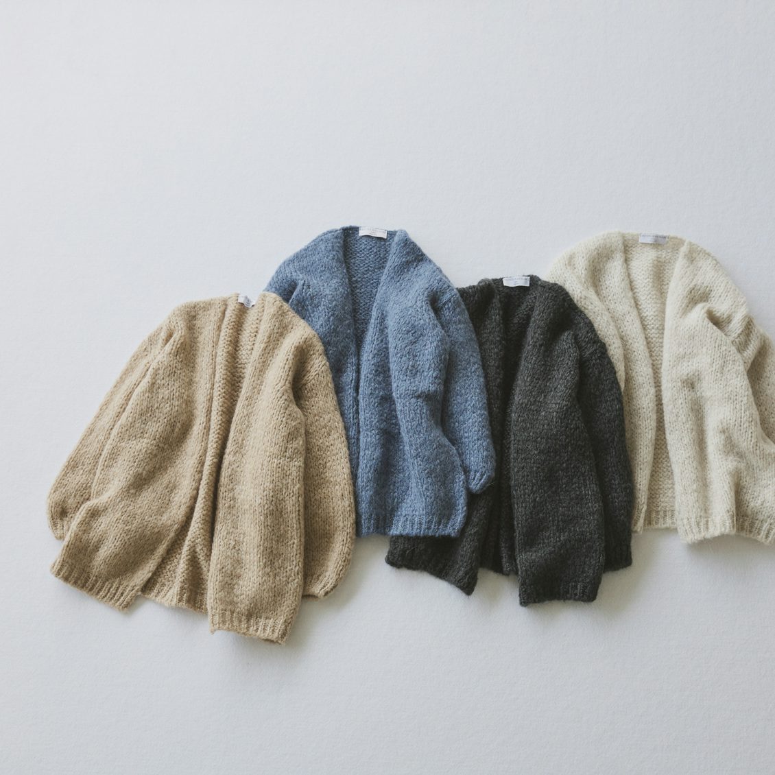 普段のお洋服に合わせやすく、ざっくり編みのやわらかい表情を楽しんでいただけるお色をセレクトしましたよ。