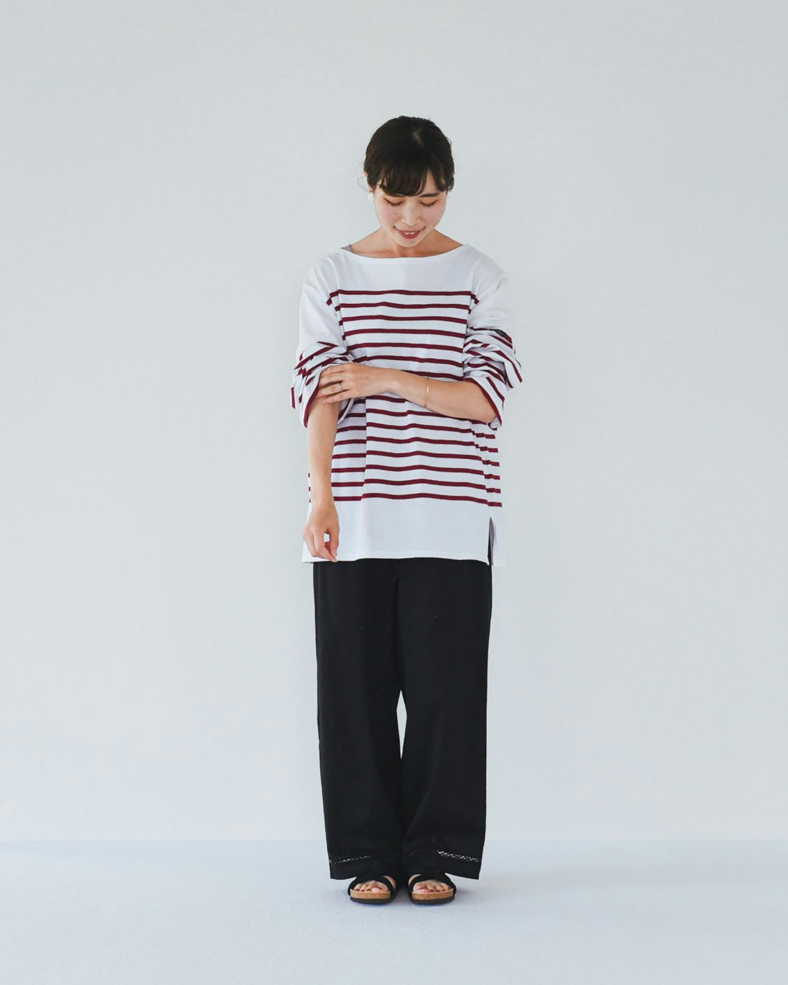 足首がちょっとだけ見えるので軽やかな印象がありますね。