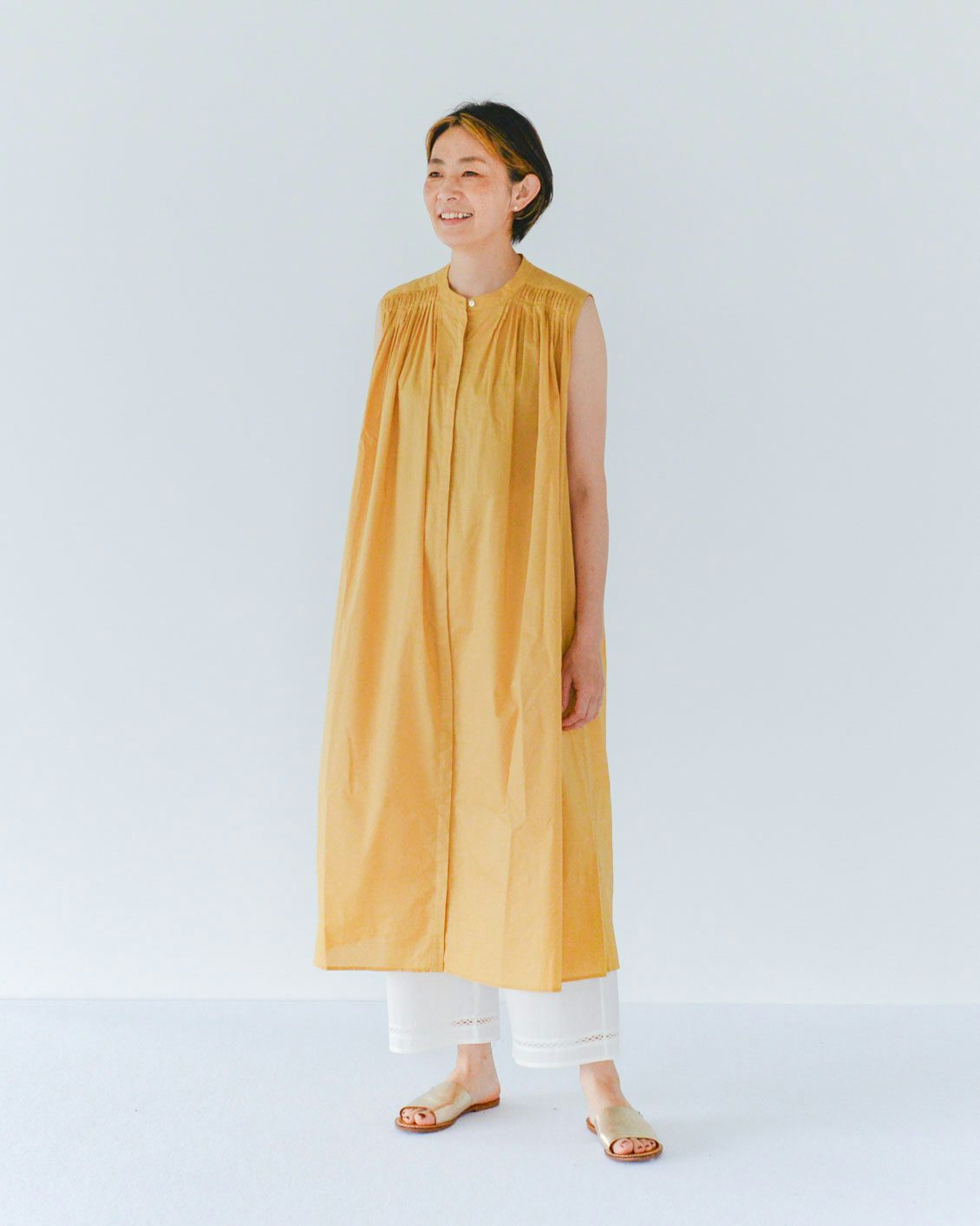 今までは丈が合わないものは、デニムなどボトムスを重ねて着ることが多くて。だけど夏にデニムを重ねると暑いんですよね。せっかく楽に着られるワンピースなのに。