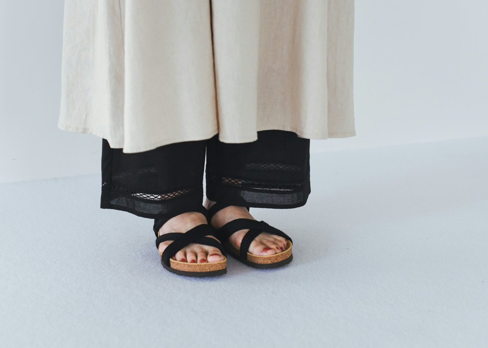 丈が今の感覚だと絶妙に短かったり、透け感にソワソワしちゃったり。かといって手持ちのデニムやチノを合わせるとどうも重たく、なんせ暑い!