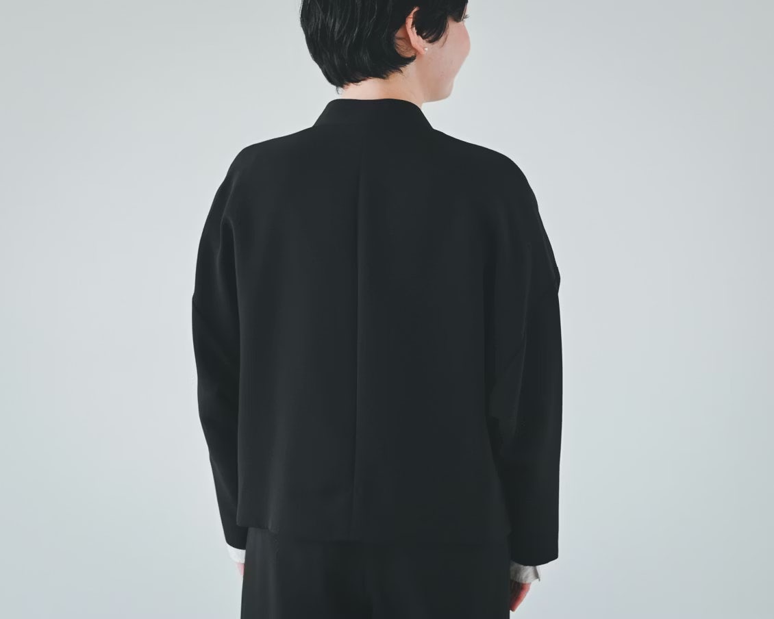 襟元のカーブも立ち上がりが美しく、さっと羽織るだけできちんとした印象に仕上げてくれます。それでいて、肩パットがない仕立てなので、ほどよく柔らかな雰囲気が漂うデザインになっているのも、とても好きです」