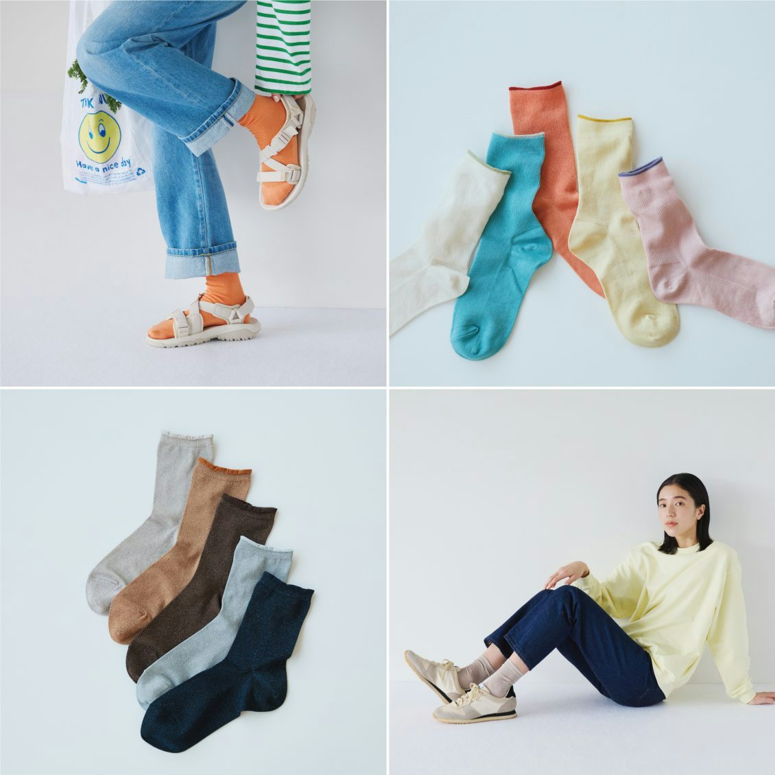 春夏の定番靴下から「足元15cmの景色をつくる靴下 / skip(スキップ)」と、上品なラメを施した「きらめく湖面のような、ささやかなラメ靴下」が同時に発売です。