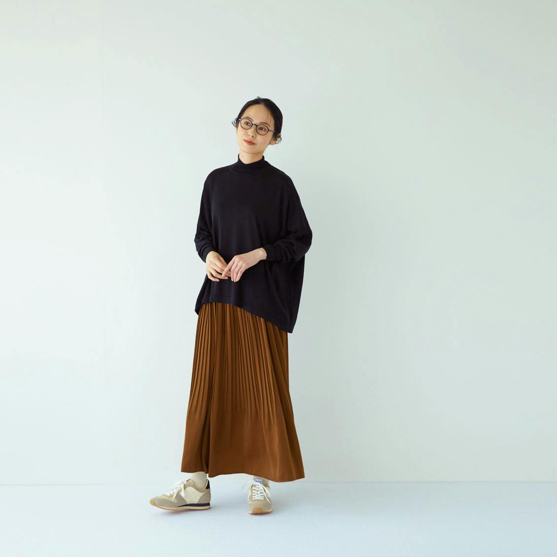 途中まできっちり入った繊細なプリーツが膝下あたりから消えていくことで、緩やかなAラインになっています。