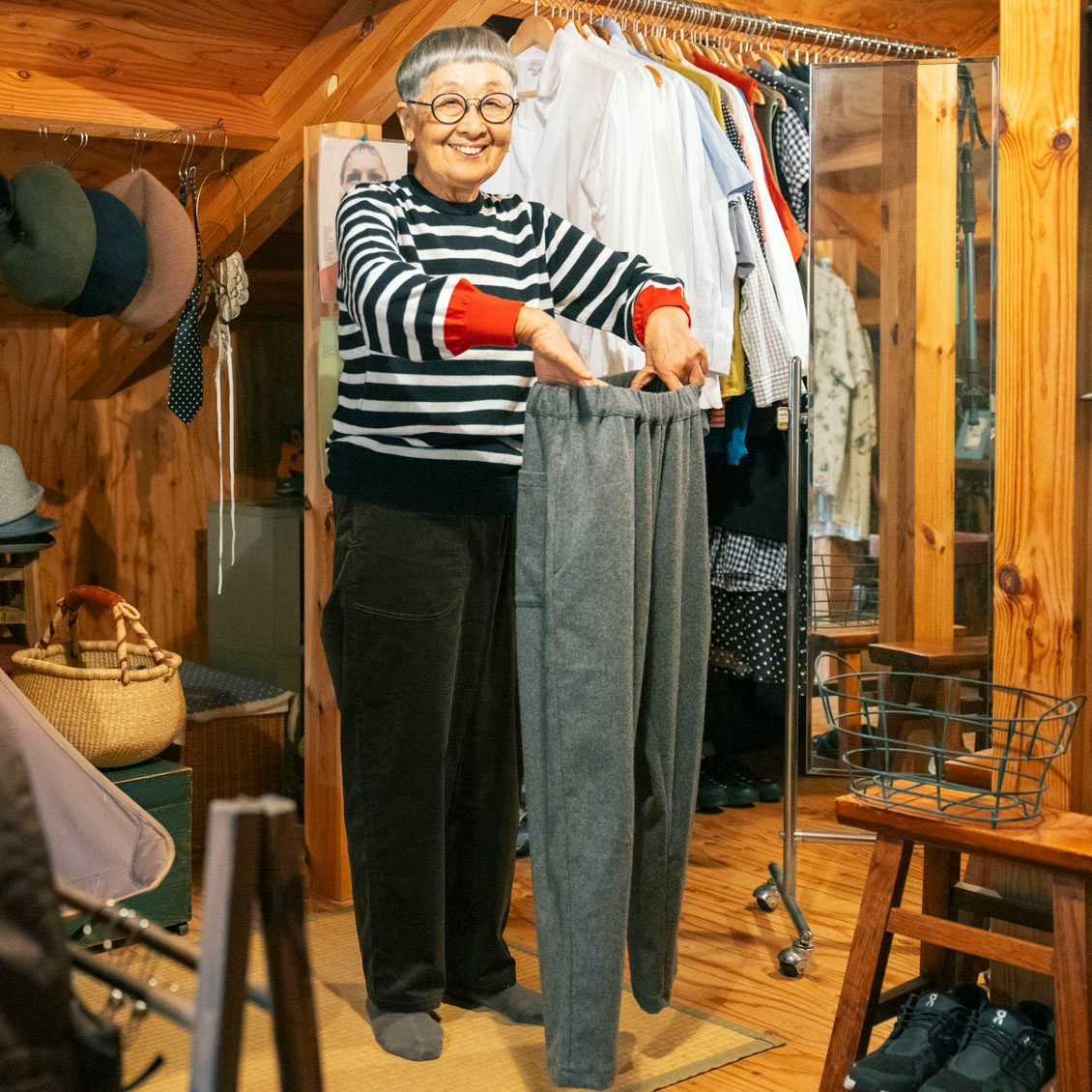 そんな重ね着シーズンに重宝する「動きやすくて、あったかい」裏起毛のペグパンツの着回しについて、德田民子(とくだ たみこ)さんにお話を伺います。