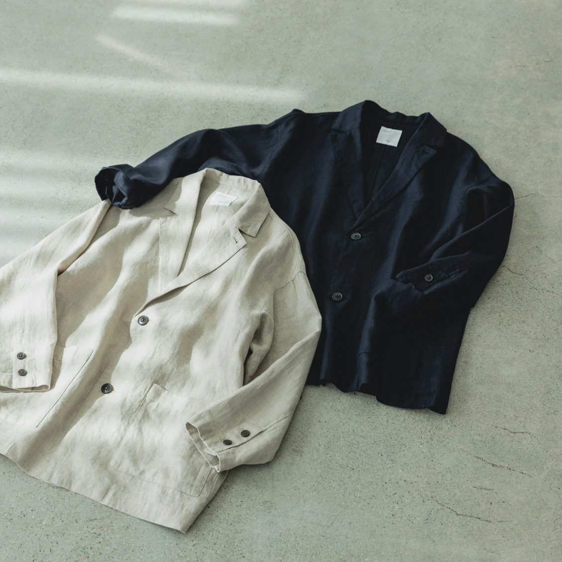 当店スタッフも大好きなアパレルブランド “かぐれ” とコラボした、「ラフに、カーデ感覚」フレンチリネンのテーラードジャケット。