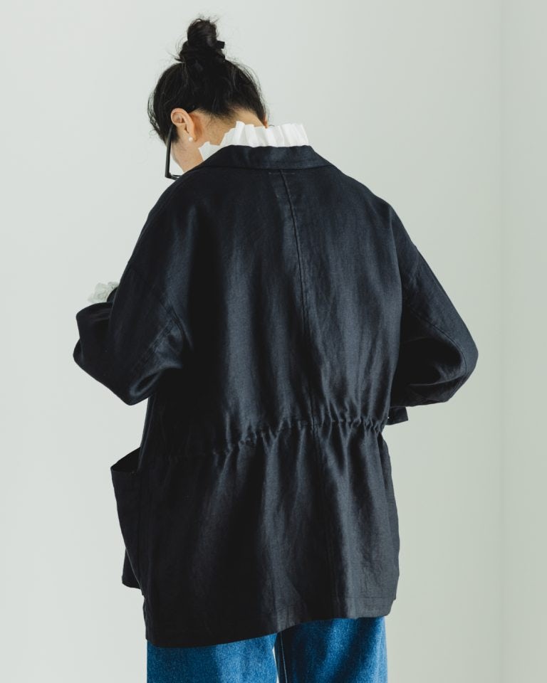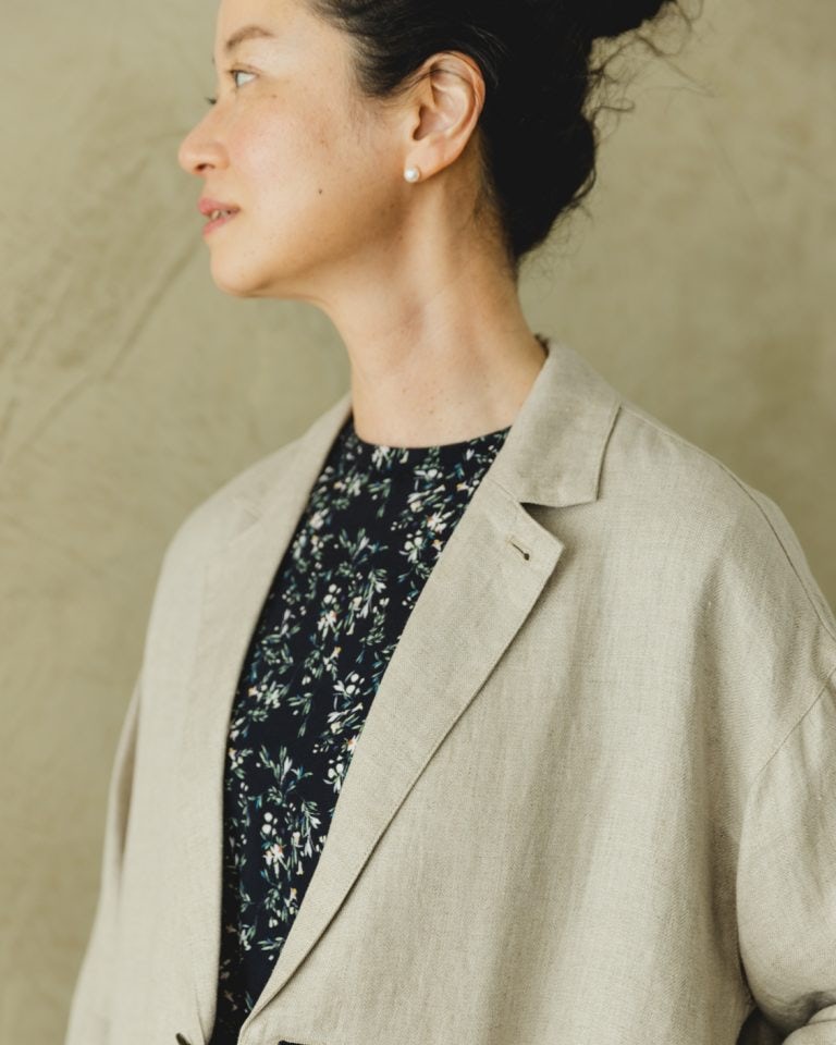 かぐれと一緒につくった「フレンチリネンのテーラードジャケット」。
