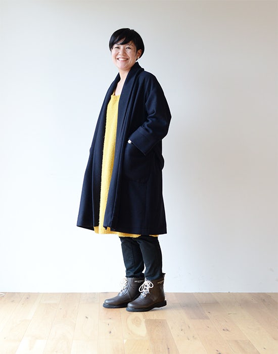 (アウター:l’atelier du savon、トップス:ZUCCa、ボトムス:GU)「毎日ほとんどパンツスタイルなので、細身のパンツにも、太めのパンツにも合わせやすい、ショート丈は重宝しそうです」