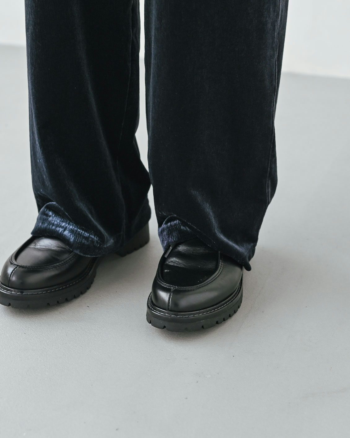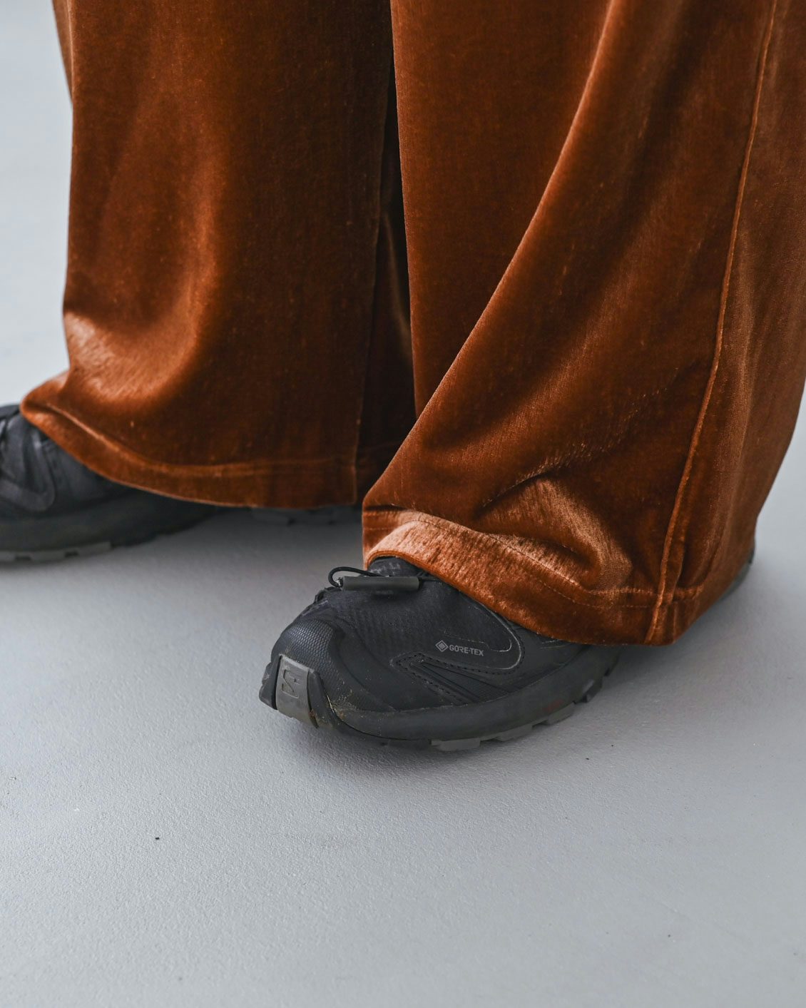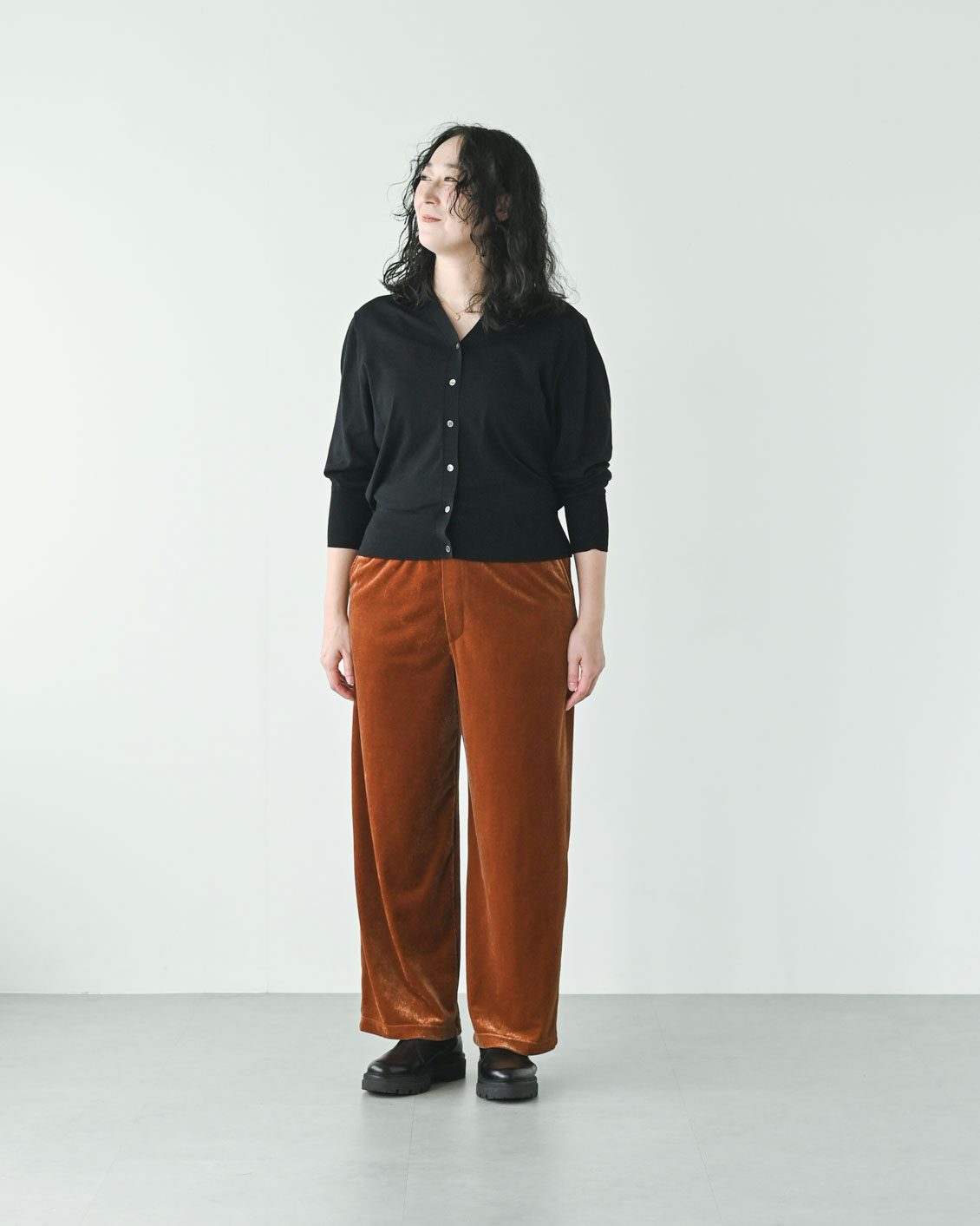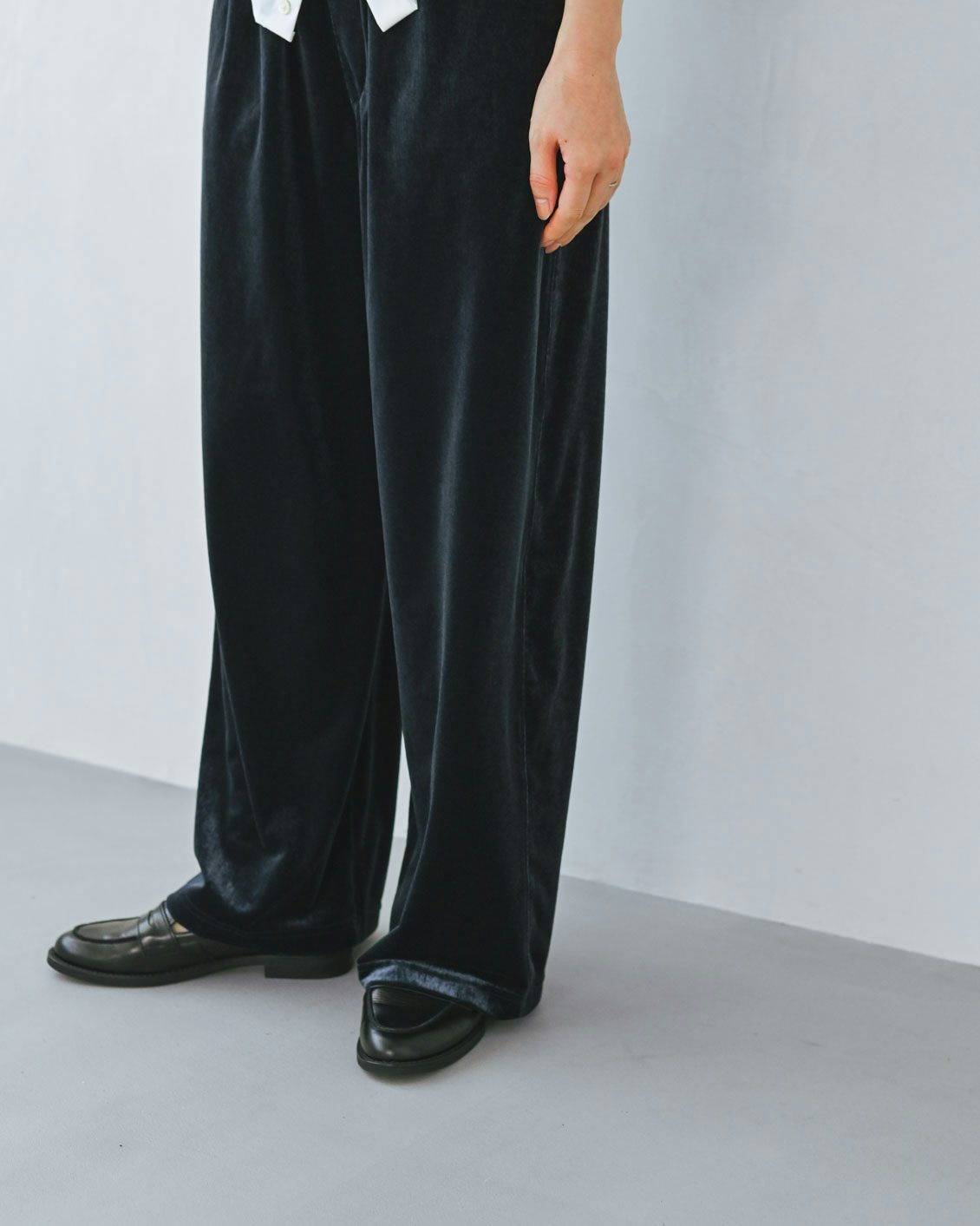 ベロアのアイテムはハードルが高いイメージがあっのですが、この落ち感のあるシルエットに普段からなじみがあるからか、このパンツにははきやすさを感じました。