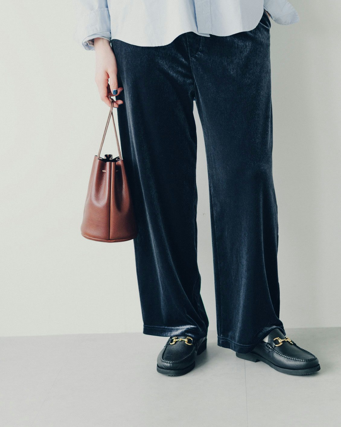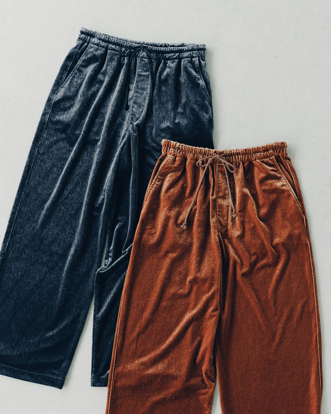 【新商品】揺れる光をボトムスに。大人のイージーベロアパンツができました