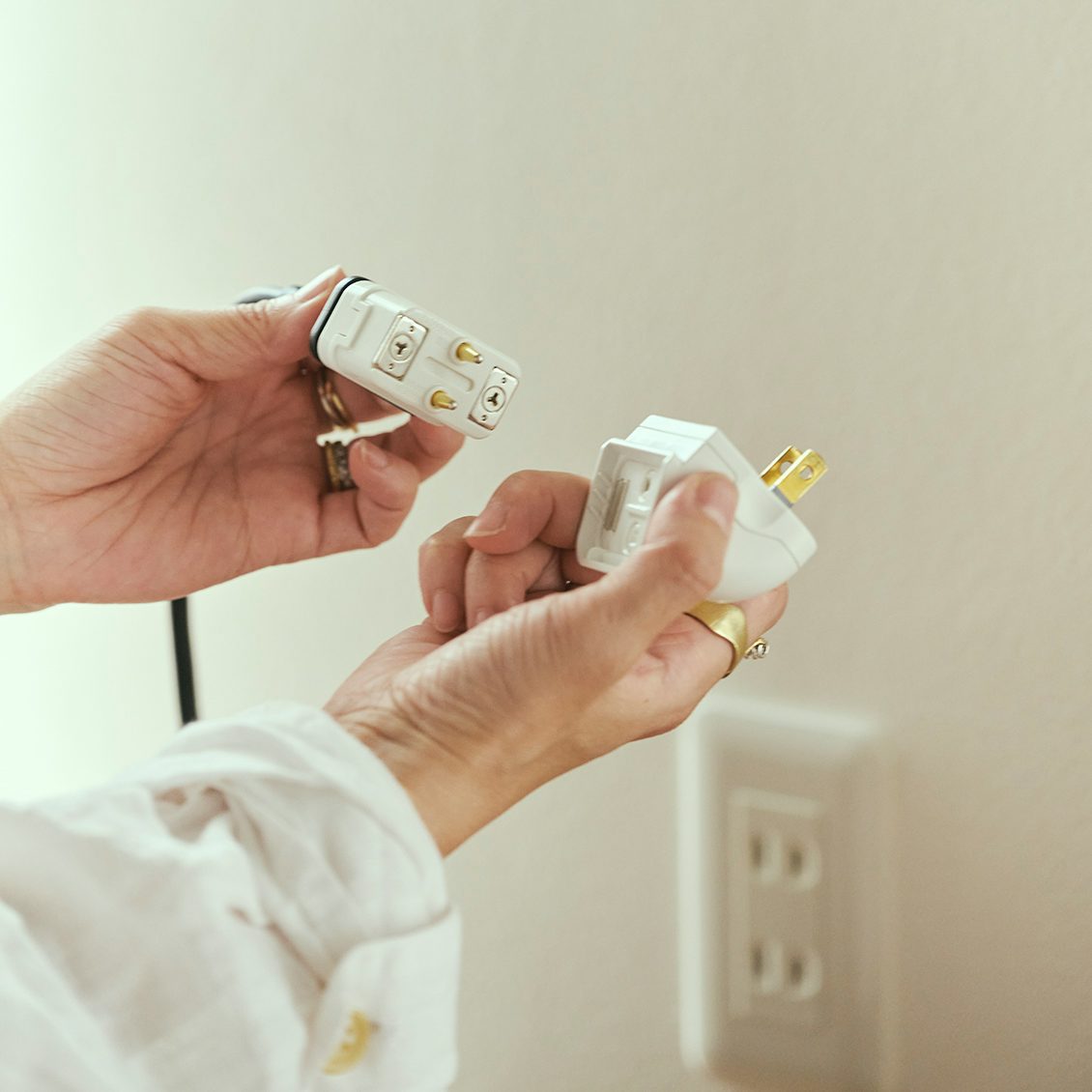 ▲このあいだうっかりコードに足を取られてしまったが、マグネット式のタップなのでぱっと外れたことも安心材料に。これならテレビが倒れてけがをする心配もせずに済む。