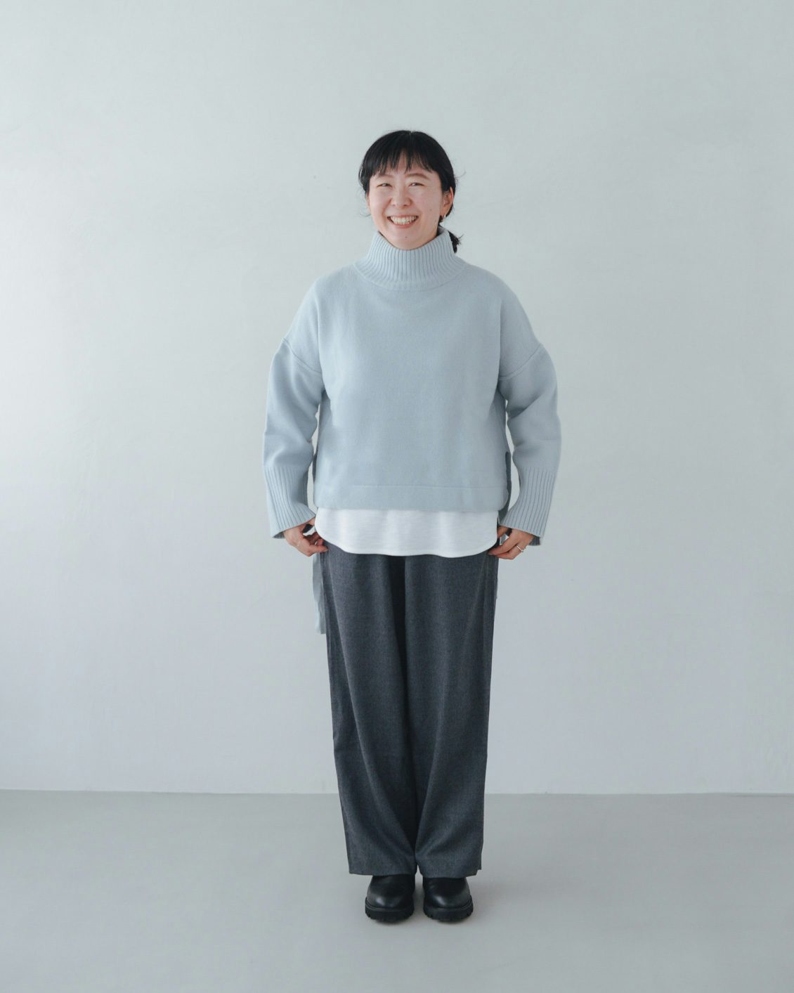 当店の起毛ニットと合わせたのですが、重ねた時のバランスがとても良かったです。