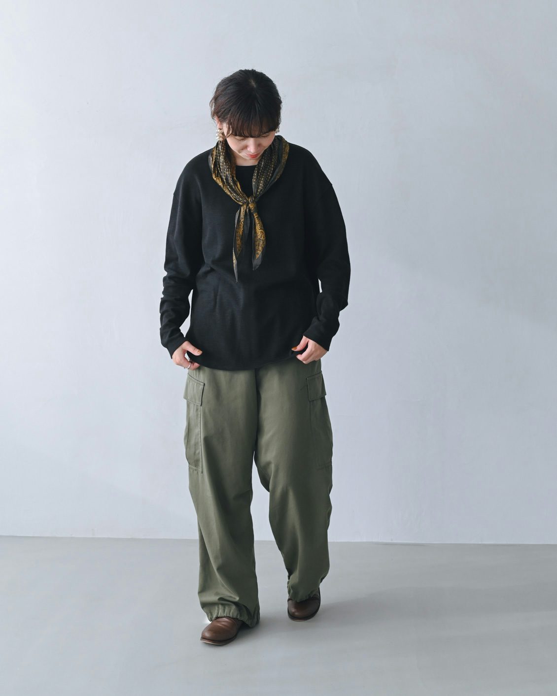 ほんのりニュアンスのあるコットンスラブ素材もいいですね。ストレッチが効いていて着やすいのも嬉しいポイントです」