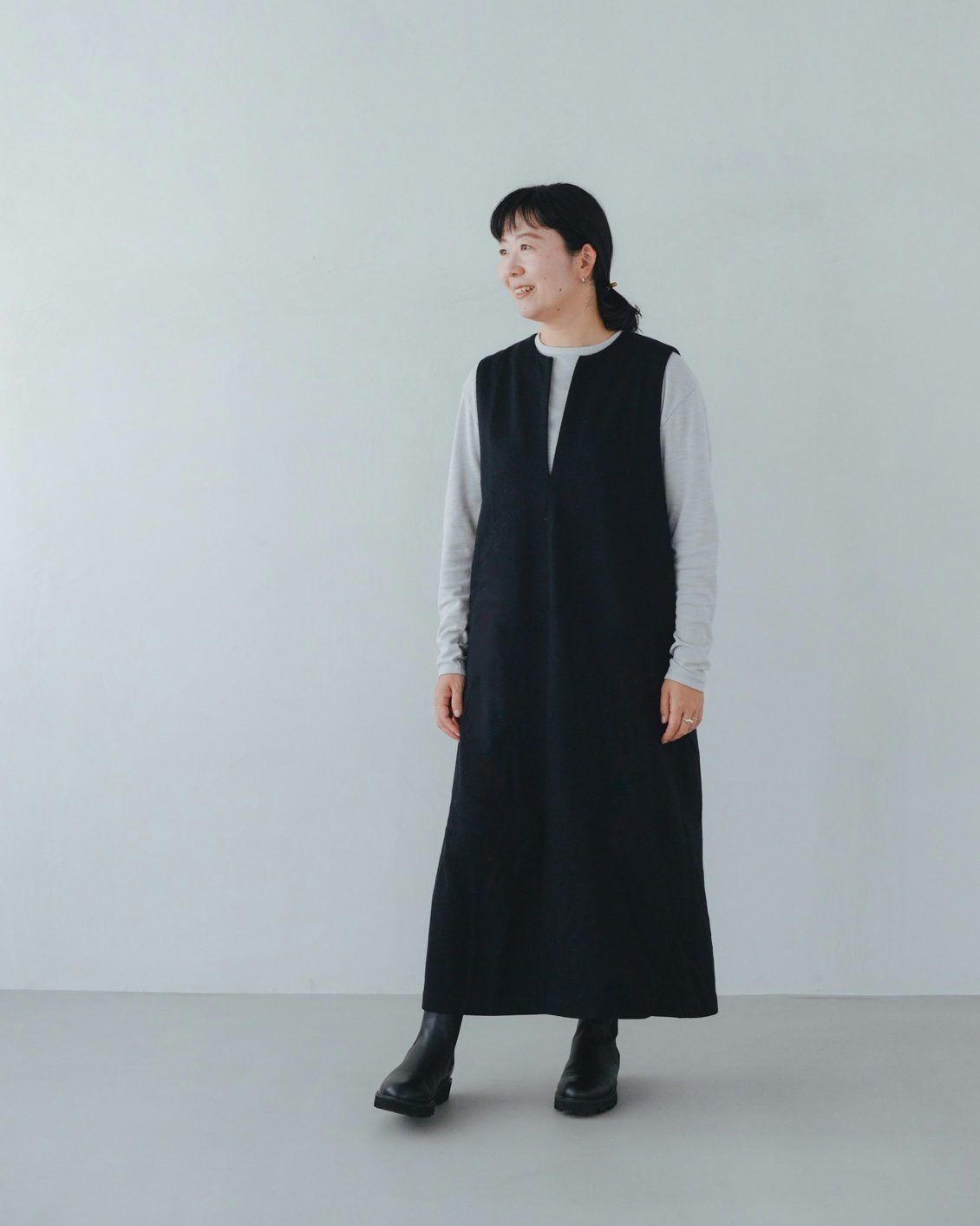 襟元からのぞくインナーの形や、裾の出方が絶妙なバランスで、何も考えなくてもレイヤードが決まるのが嬉しいです」
