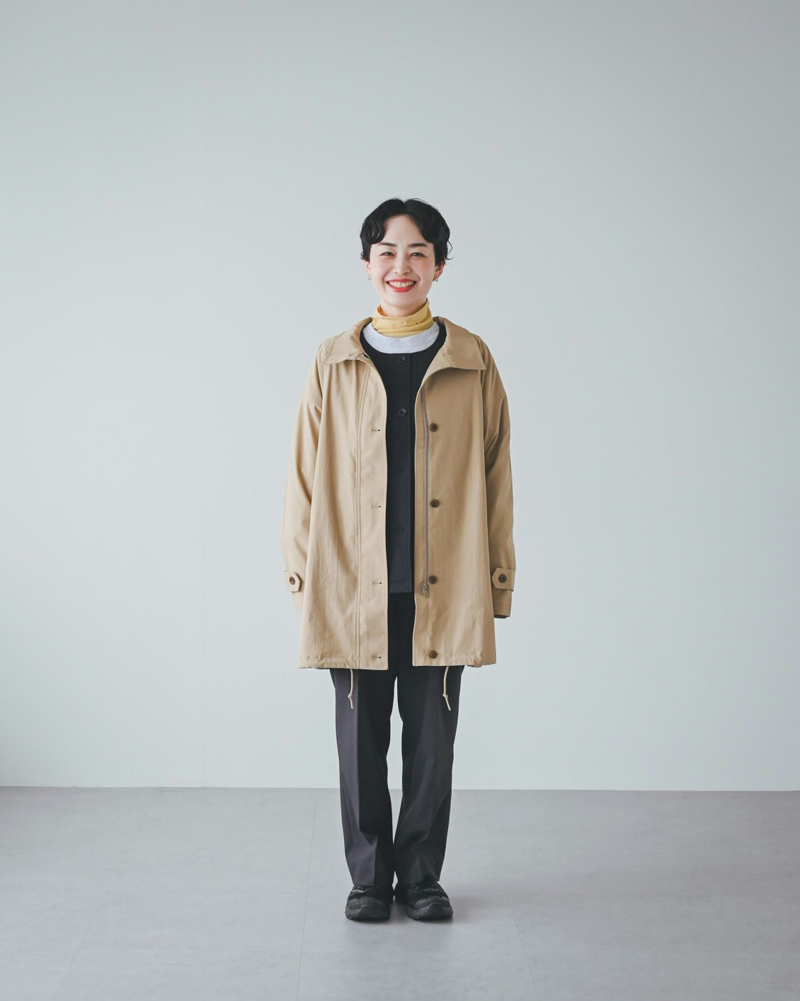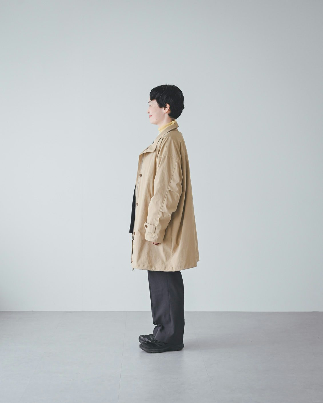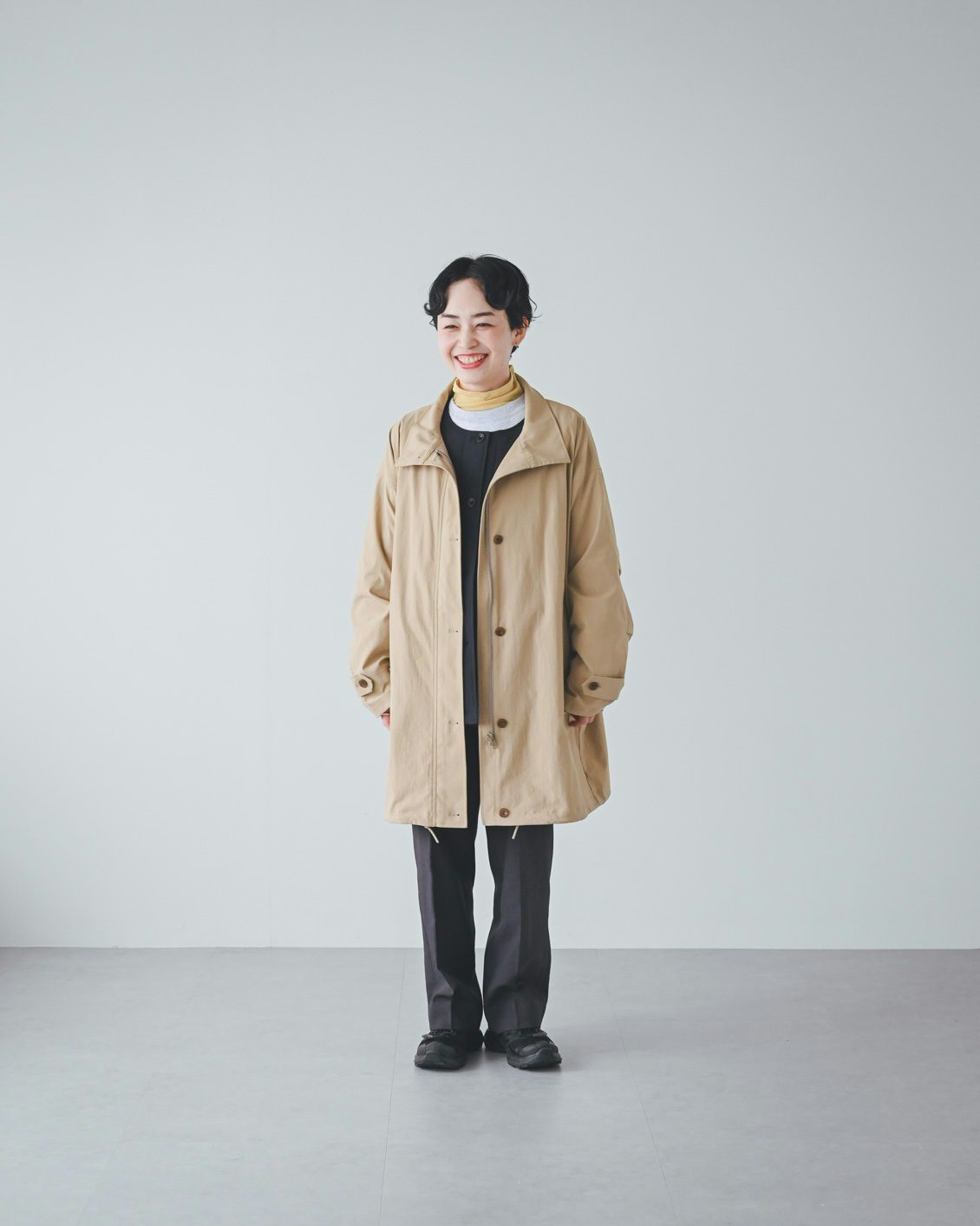 「また個人的に一番嬉しいのは、洗濯機で洗えること。花粉症なので、秋や春にさらりとした質感の、洗えるコートがあると本当に助かります。
