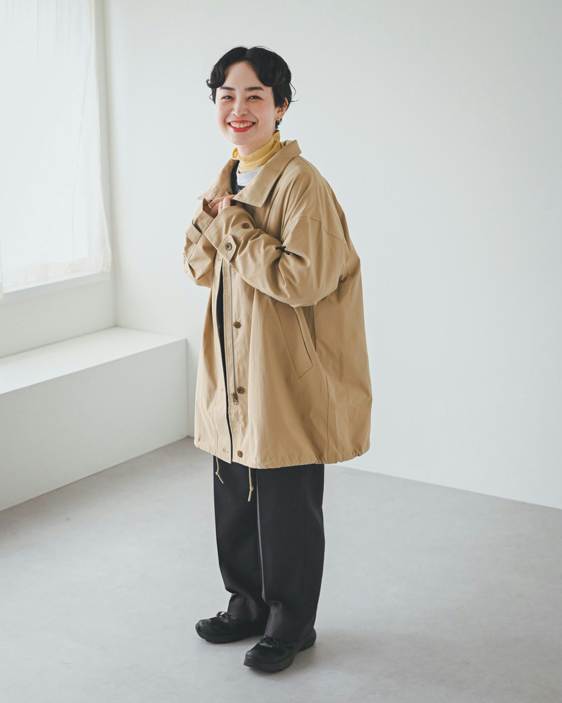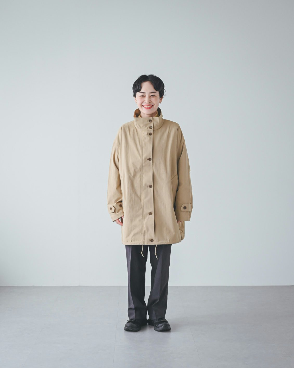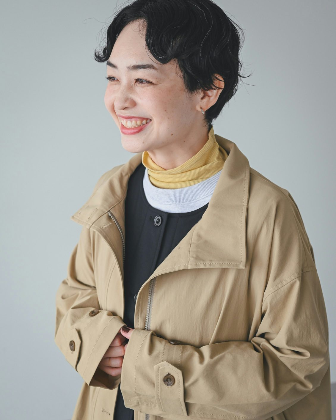 「また個人的に一番嬉しいのは、洗濯機で洗えること。花粉症なので、秋や春にさらりとした質感の、洗えるコートがあると本当に助かります。