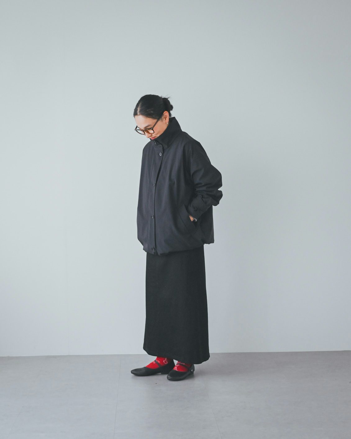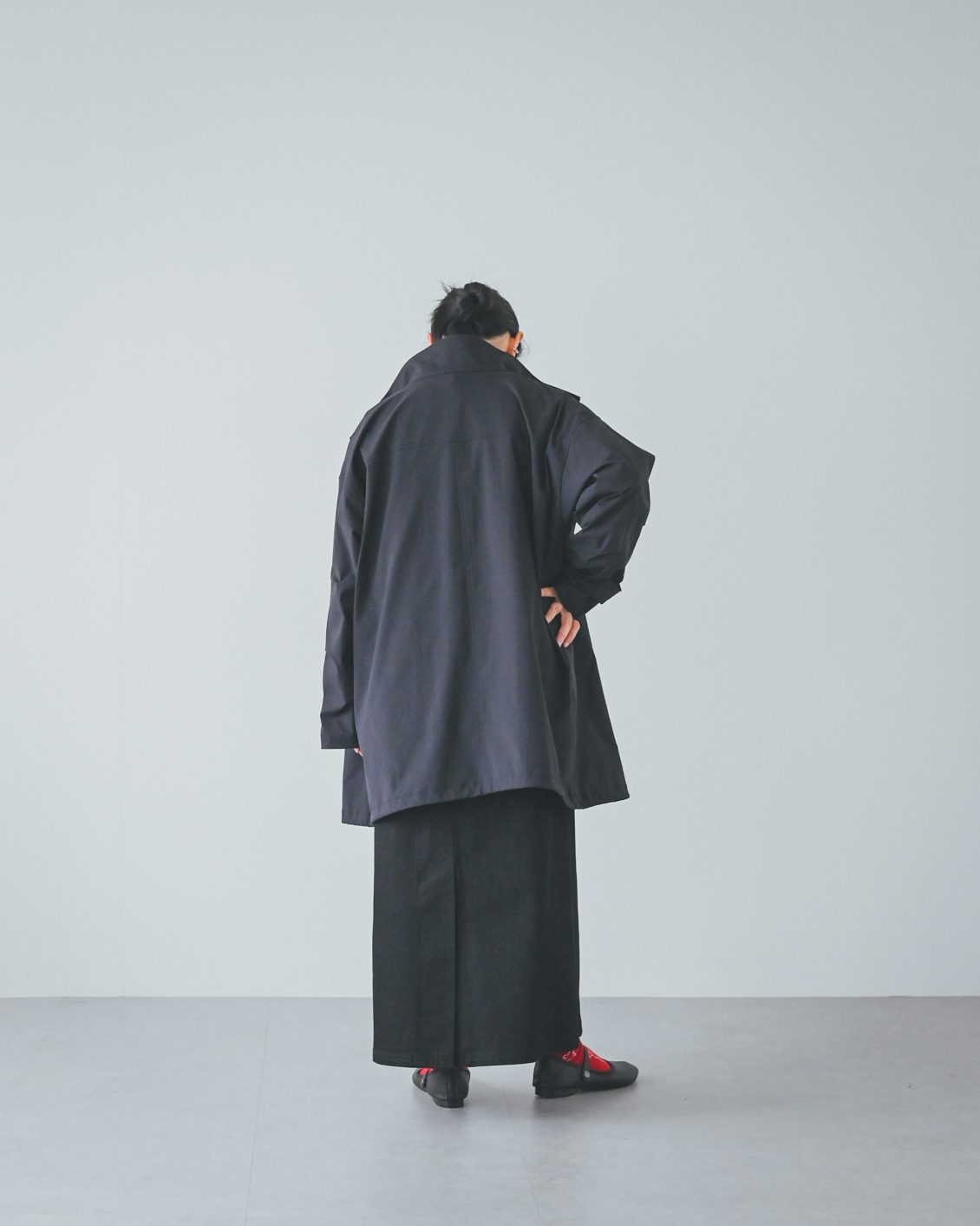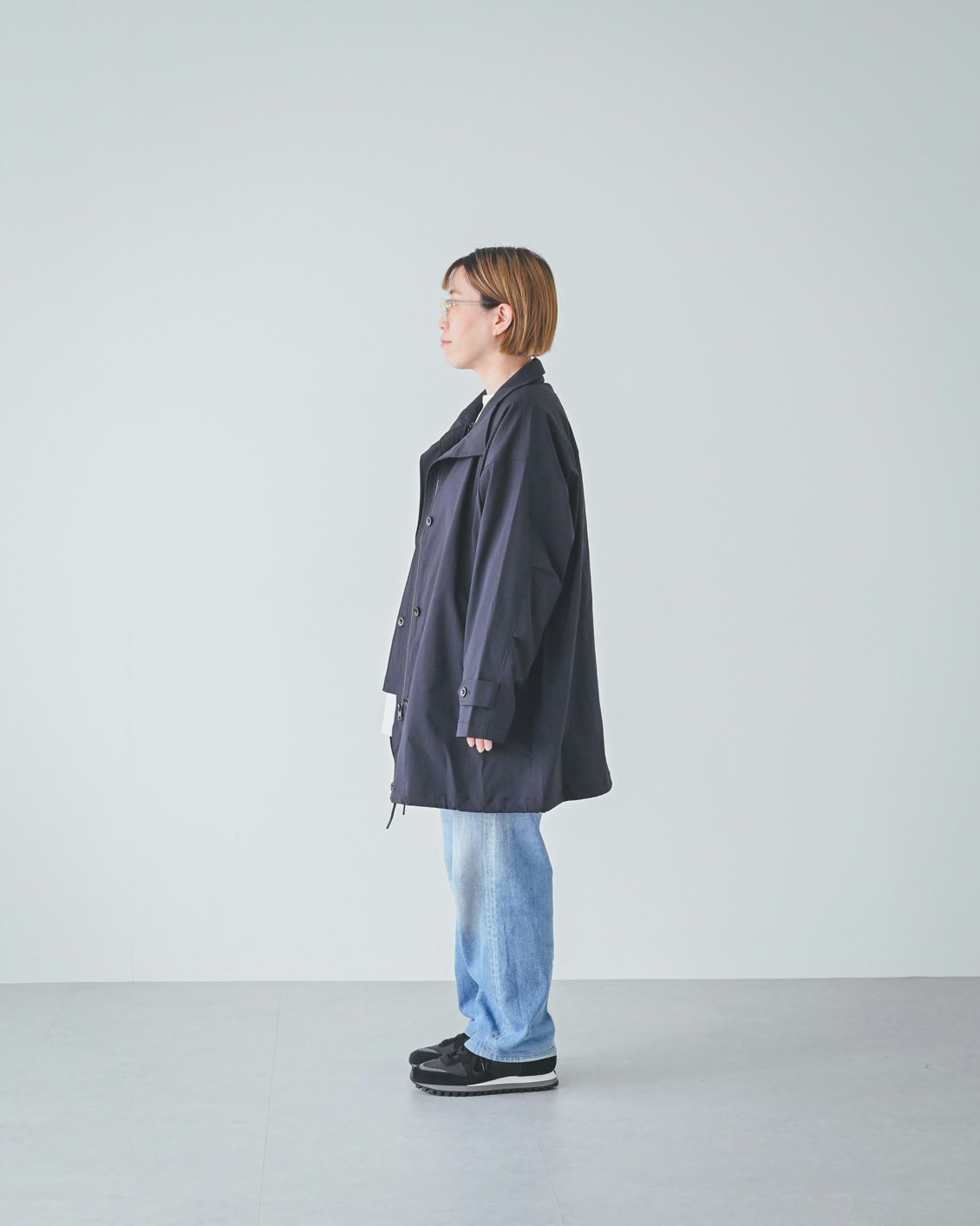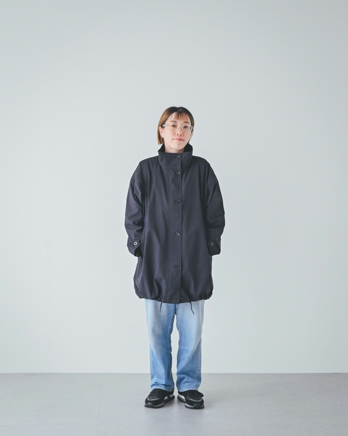 体型的にミドル丈だとバランスよく着こなすのが難しいかな?と最初は心配していたのですが、いざ着てみると、意外と何も工夫をしなくてもバランスがとれました。ボトムスやインナー、足元の合わせに悩まなくていいので、朝の支度も楽になりそうです」