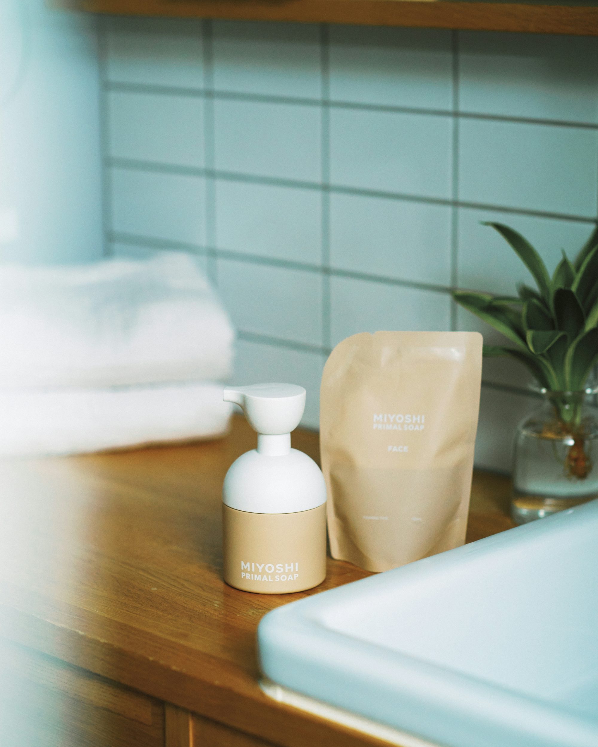 今回はMIYOSHIシリーズの愛用者でもある、当店のデザイナー野村に、洗顔せっけん「MIYOSHI PRIMAL SOAP FACE」を使ってみてもらうことに。その魅力や、使うことで起こる暮らしと気持ちの変化を尋ねます。