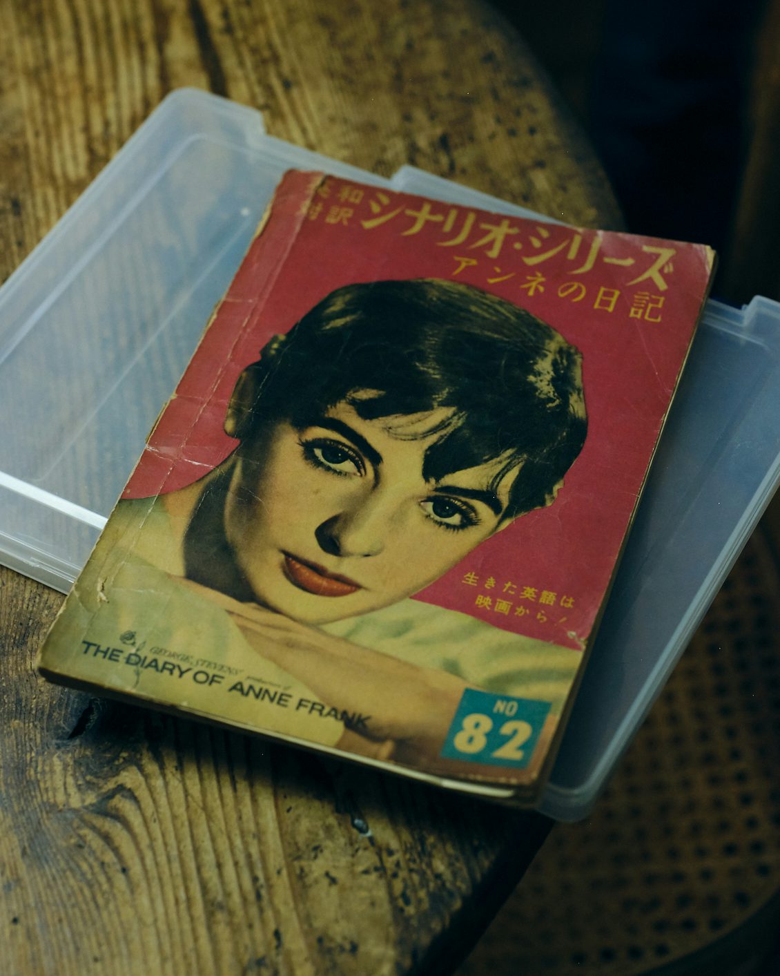 「高校生のときに買った、映画『アンネの日記』の対訳シナリオ集です。
