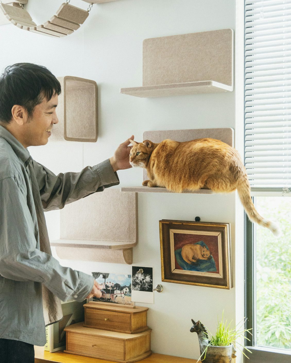 「猫壁」が叶える猫も人も心地よさを分け合って過ごせる空間。自分にとってのお気に入りの場所が猫にとってのお気に入りの場所になるかもしれない。猫たちの様子を見ながら配置を変えつつ、自分たちのインテリアも楽しむ。そんな時間の積み重ねが、これからの猫との暮らしをいっそう豊かにしてくれそうです。