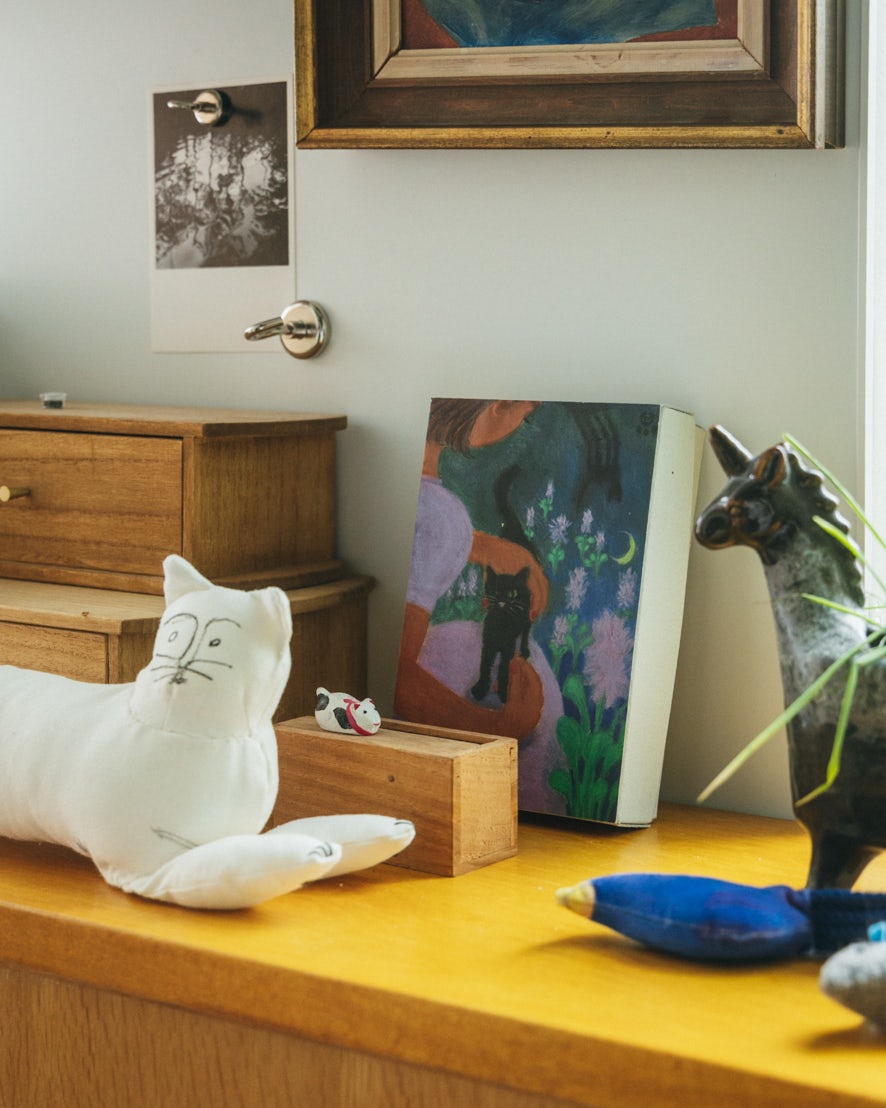「猫壁の下にはチェストを置いてみたのですが、家具と並べるとぐっと部屋になじんで、とても気に入っています。下部分は僕たち人間のアイテムを、上部に猫壁を配置して猫たちのエリアというようにゆるやかにわけるイメージです。