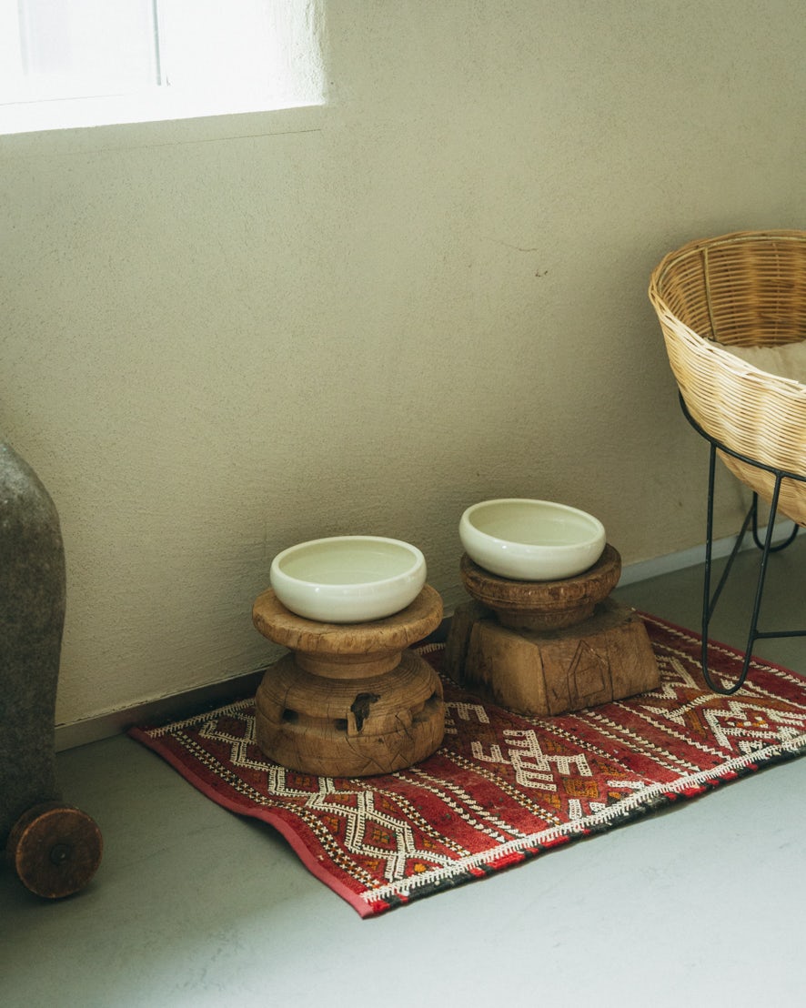 ▲谷さんの自宅でも愛用している「オルネコ」のフードボウルスタンドとミニマット。雑貨のような可愛さ!と取材陣も盛り上がりました。