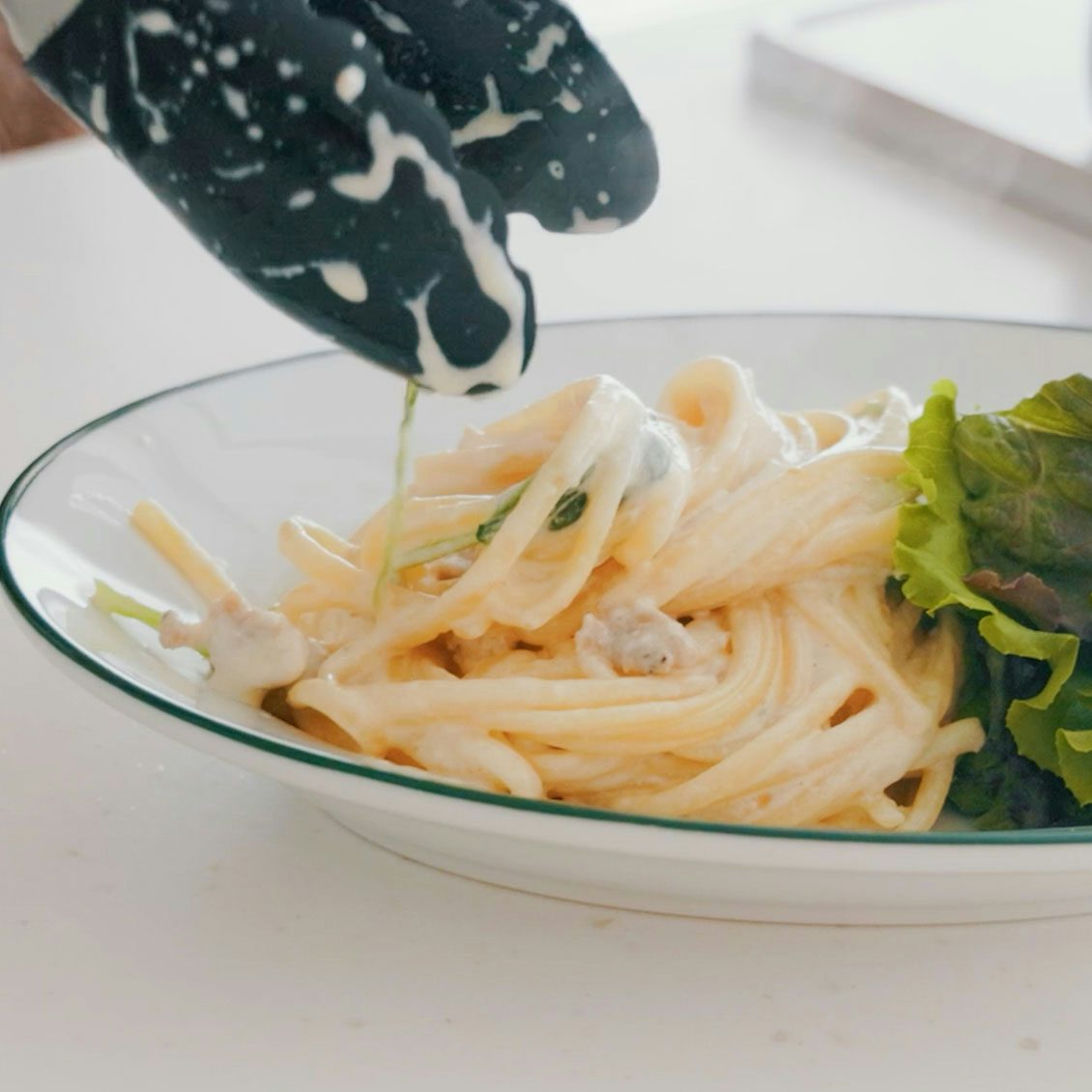 「お子さんが好きなクリームパスタをベースに、フェンネルが香る爽やかで大人っぽい味付けにしてみました。