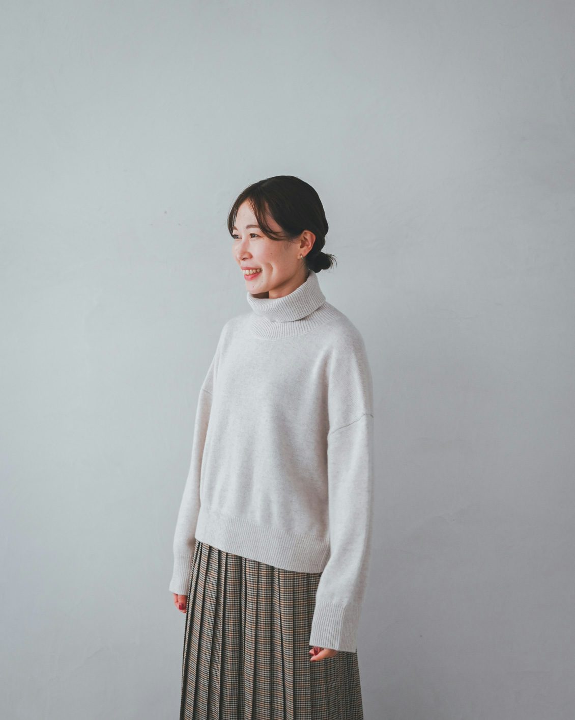 【着用レビュー】カシミヤシルク混のタートルネックニットをスタッフが試着しました