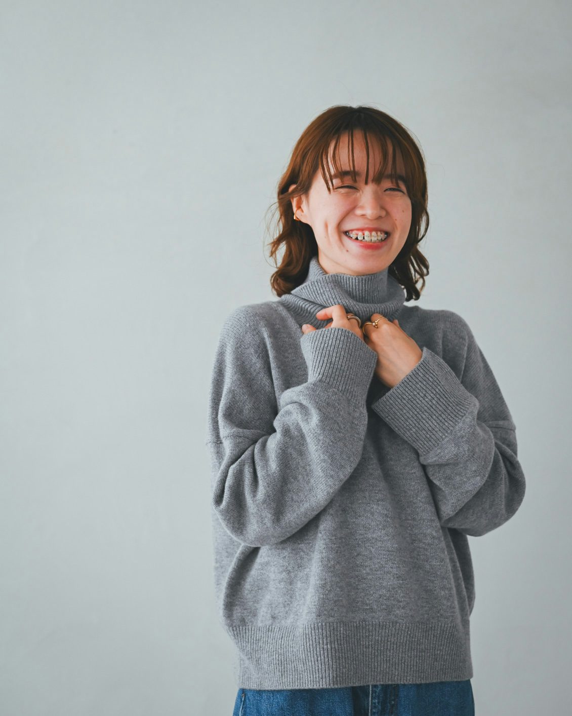 もともと首元を隠したいと思うことが多く、タートルネックは好きなアイテムのひとつ。これも首元を伸ばして、埋もれるようにして着たいです」