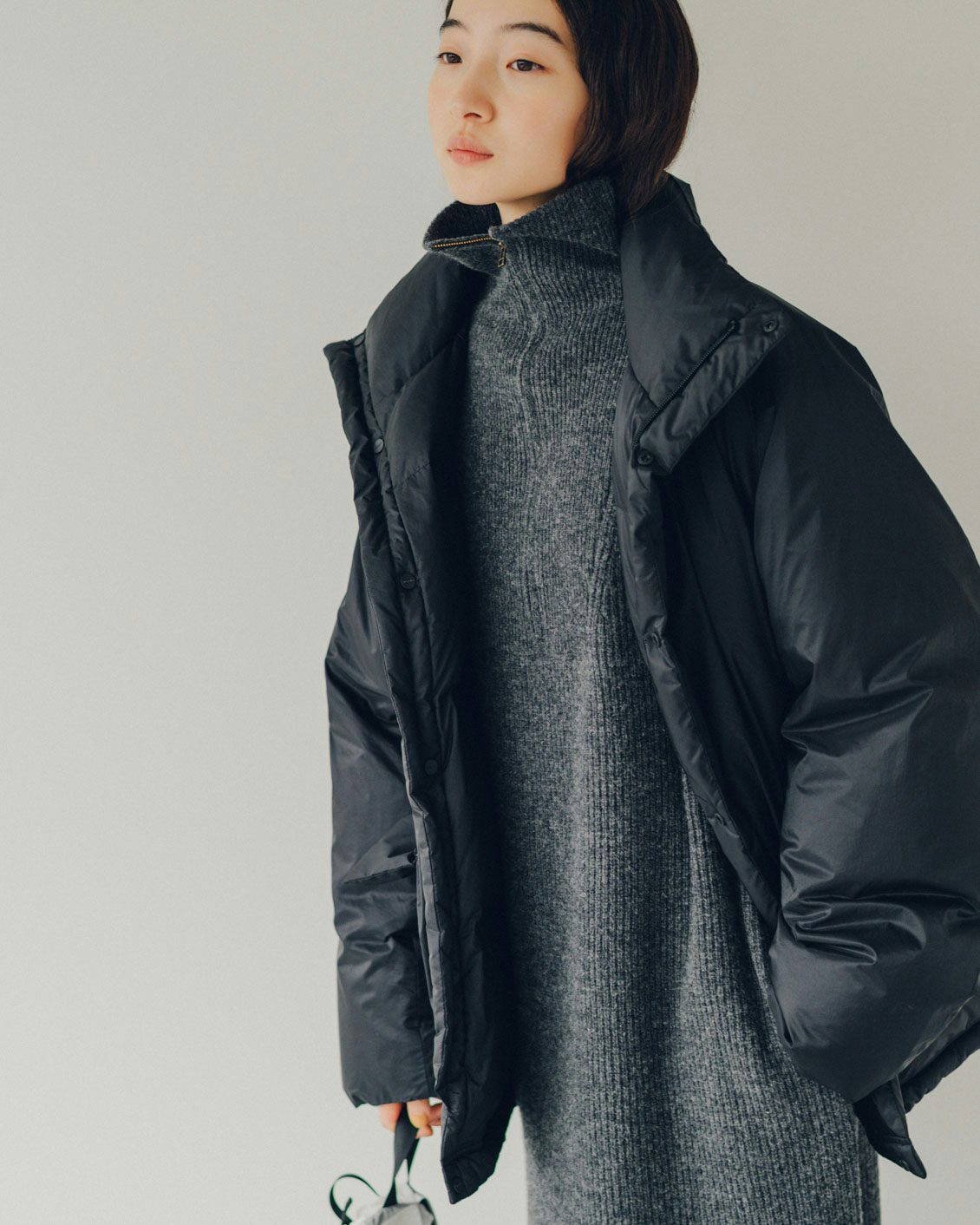 ふんわり膨らみがありながら軽やかで、一枚でも重くならず快適に着られます。全身をやさしく包み込むようなあたたかさがあります。