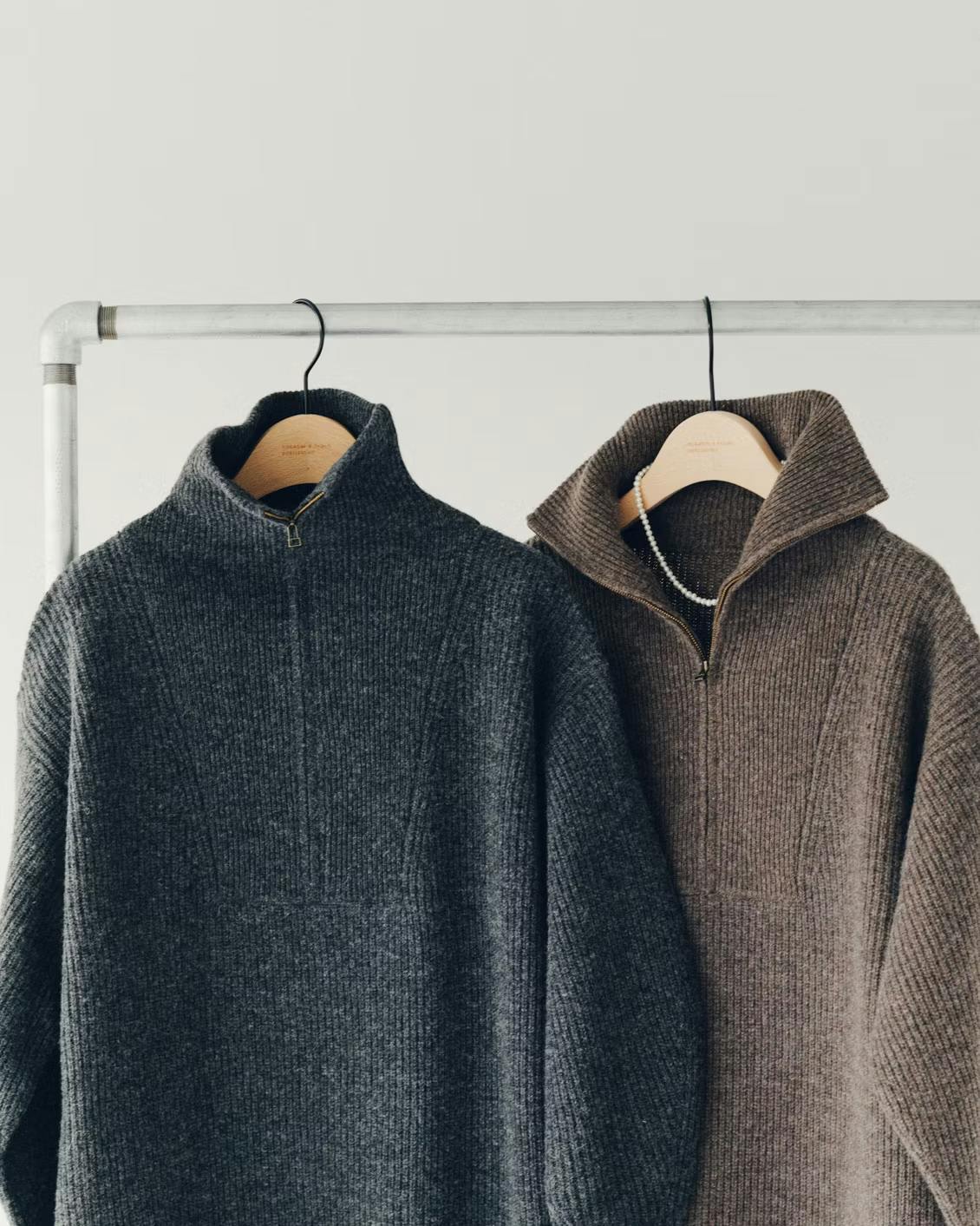 重ねるインナーやジップの開閉具合で印象を変えられるので、着こなしの幅が広いのもハーフジップの魅力。