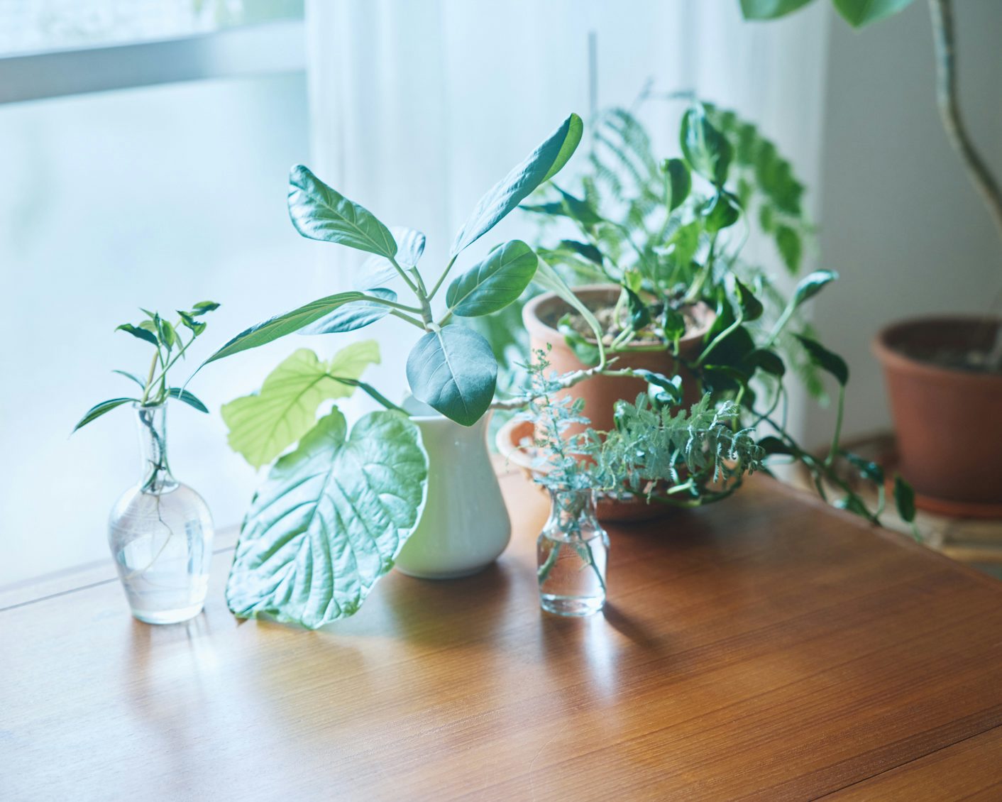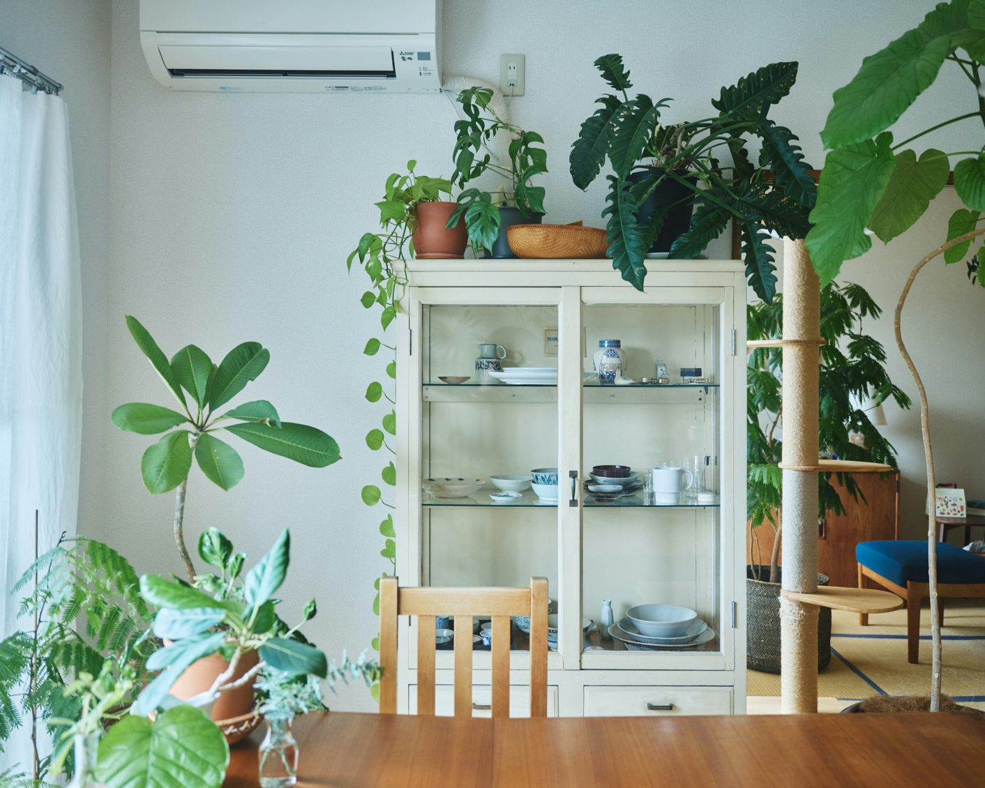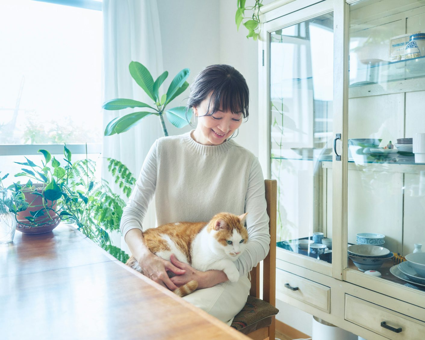 南向きの窓から気持ちよく光が差し込み、部屋の中のグリーンが生き生きとしたマンションの一室で、保護猫2匹と暮らしている柿崎さん。