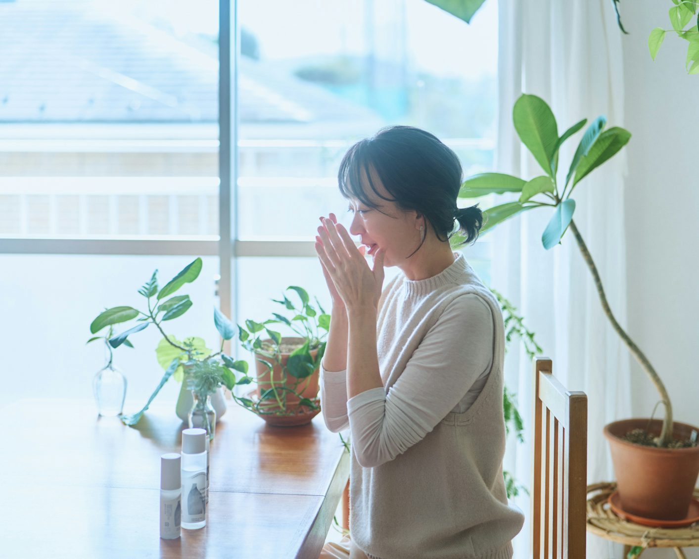 シンプルなケアを、丁寧に。そんな気持ちを取り戻してくれるスキンケア、と感想を伝えてくださった柿崎さんの言葉がとても印象的でした。