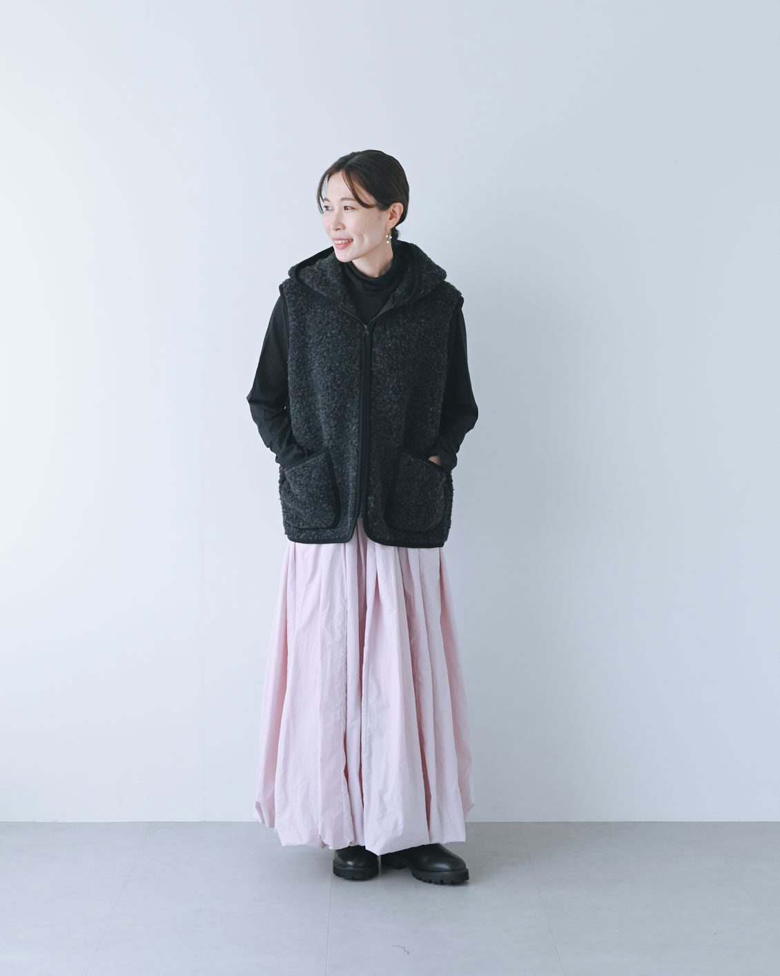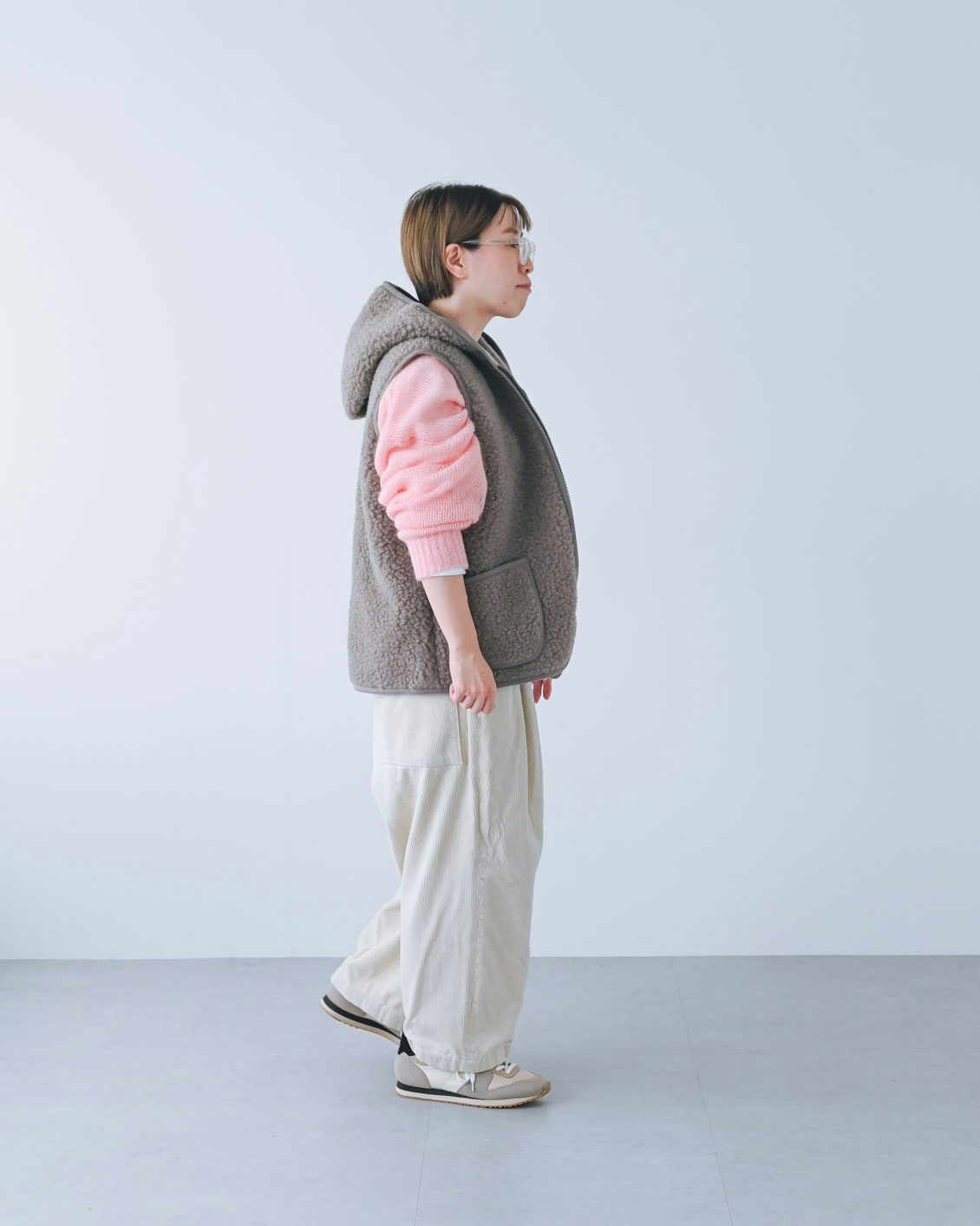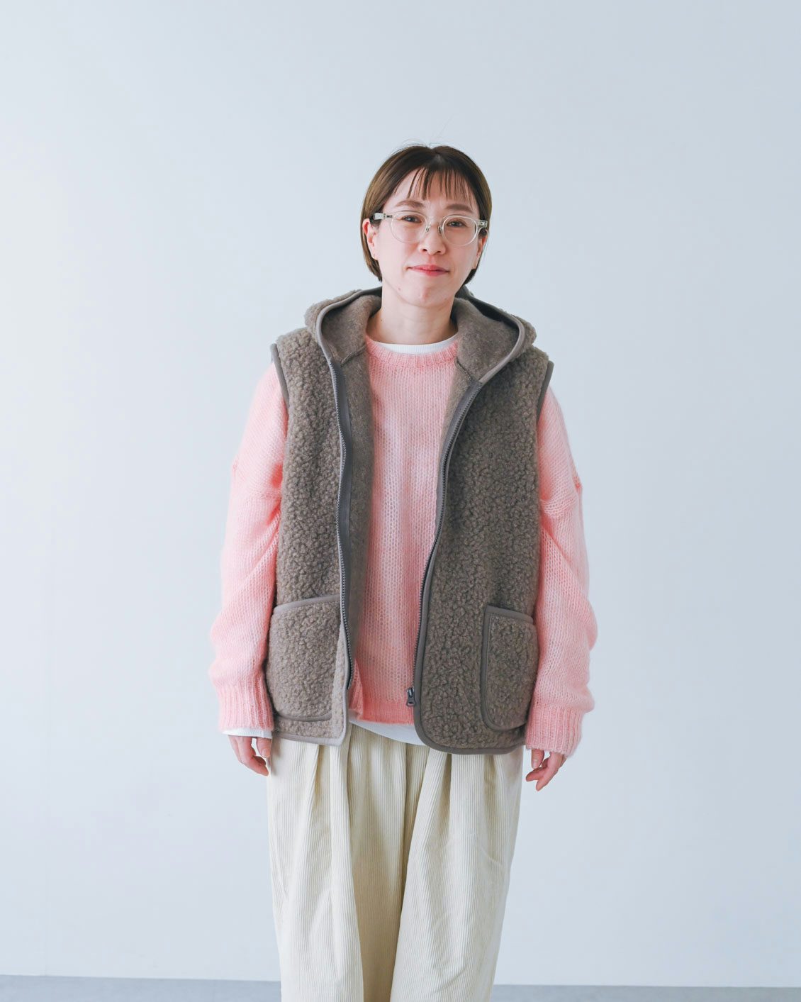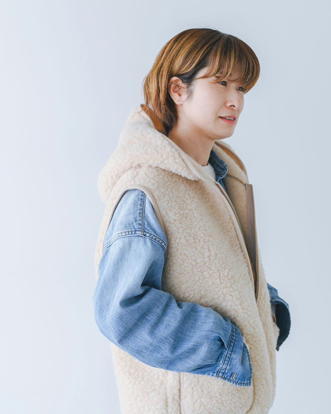 「COLD BREAKERのアイテムは昔から愛用していて、とっても暖かいし、ボアがへたることがないのでとても信頼を置いています。このベストも本当に暖かくてふわふわで可愛いですね。