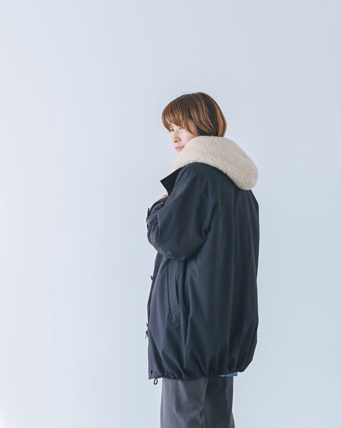 真冬にはコートのライナーとして活躍してくれそうですね。生地が柔らかいので、ごわつくこともなさそうです。フードがたっぷりボリュームがあるから、首元の風も防げて暖かいだろうな〜と思います」