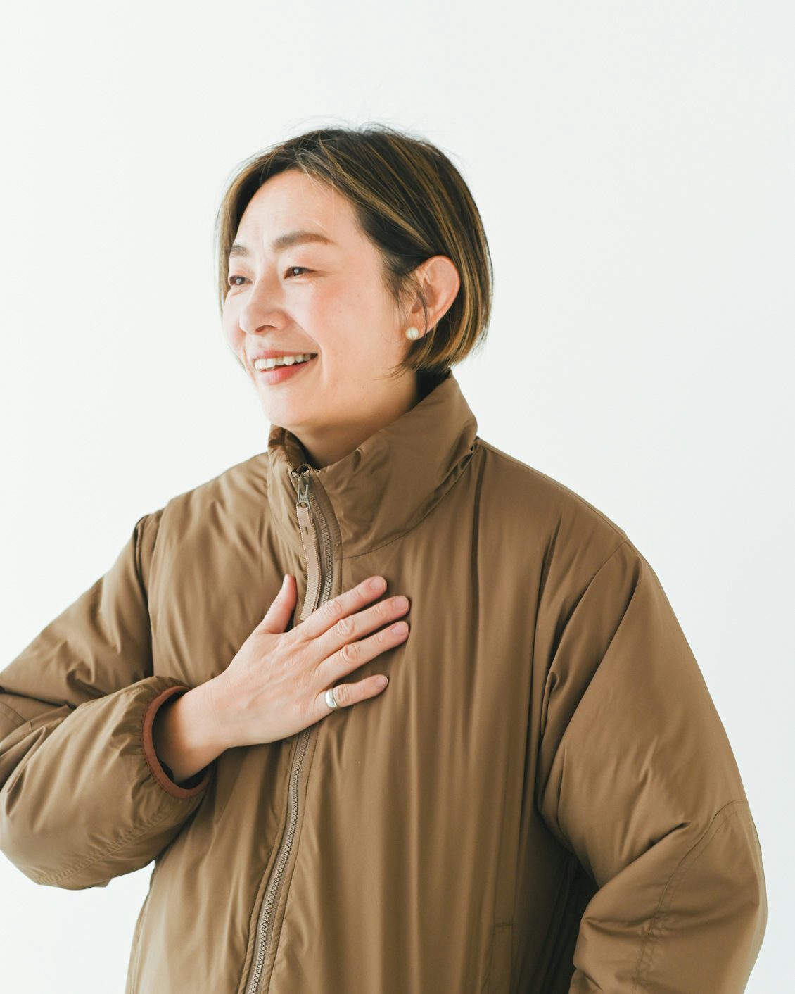 「ダウンジャケットのようなアウターは着膨れてしまったり、着心地が窮屈なイメージがありましたが、これを着てみてその苦手意識がなくなりました。