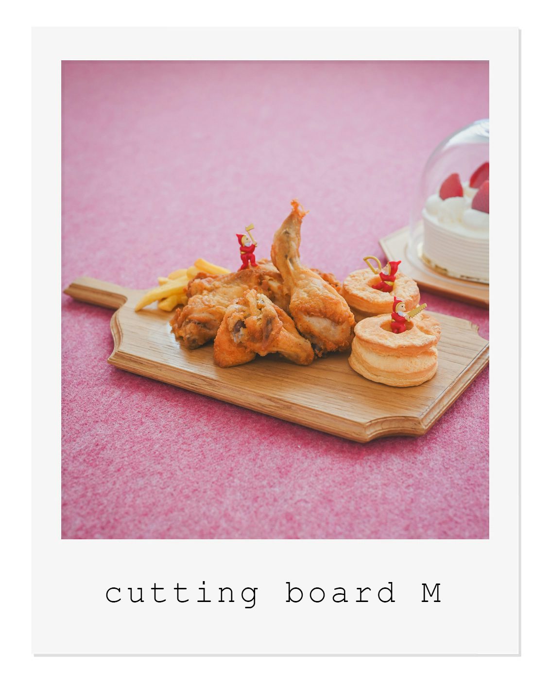 Mサイズのカッティングボードは、器としても大活躍。油ものもへっちゃらです。