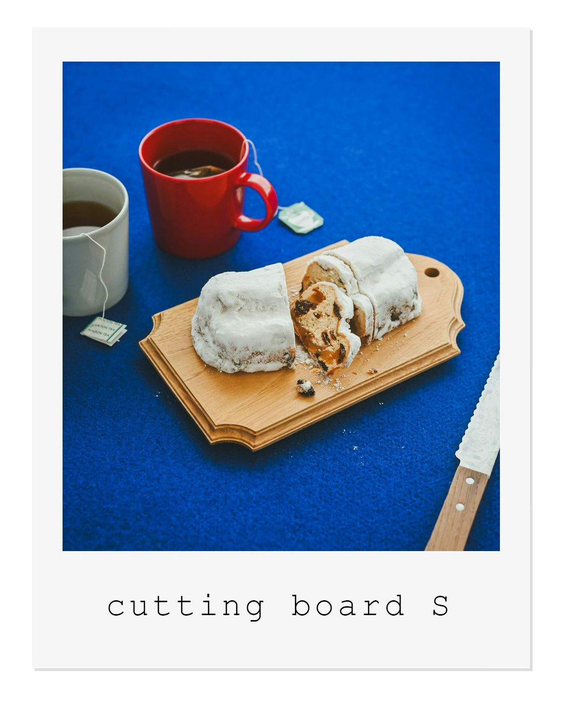 愛用しています。Sサイズは我が家のパウンドケーキ型の大きさにぴったりなので、クリスマスは簡単なケーキを焼いてこれにのせたいな〜と思っています。その場でカットできるのも嬉しいです。ふだんも果物を切ってそのまま出せるので重宝しています(スタッフ高山)