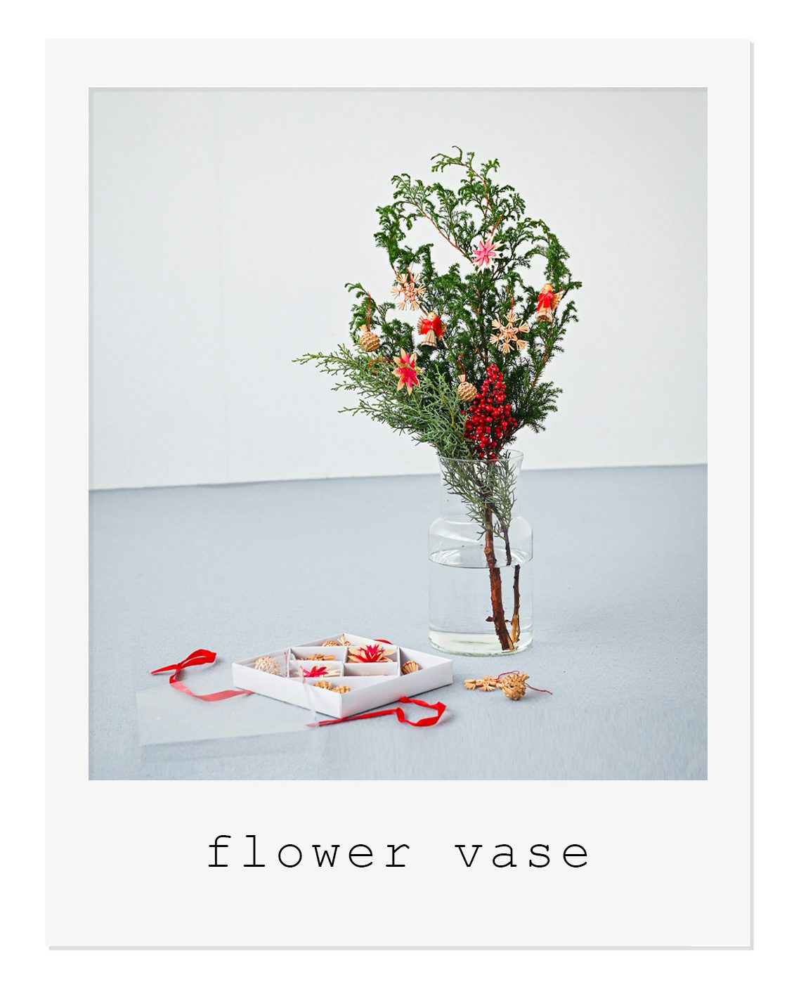 大きなツリーを置くほどのスペースや保管場所がないので、花瓶を使った簡単ツリーはトライしやすくていいなと思いました。この花瓶なら、大きめの枝ものも安心して生けられますね(スタッフ菅野)