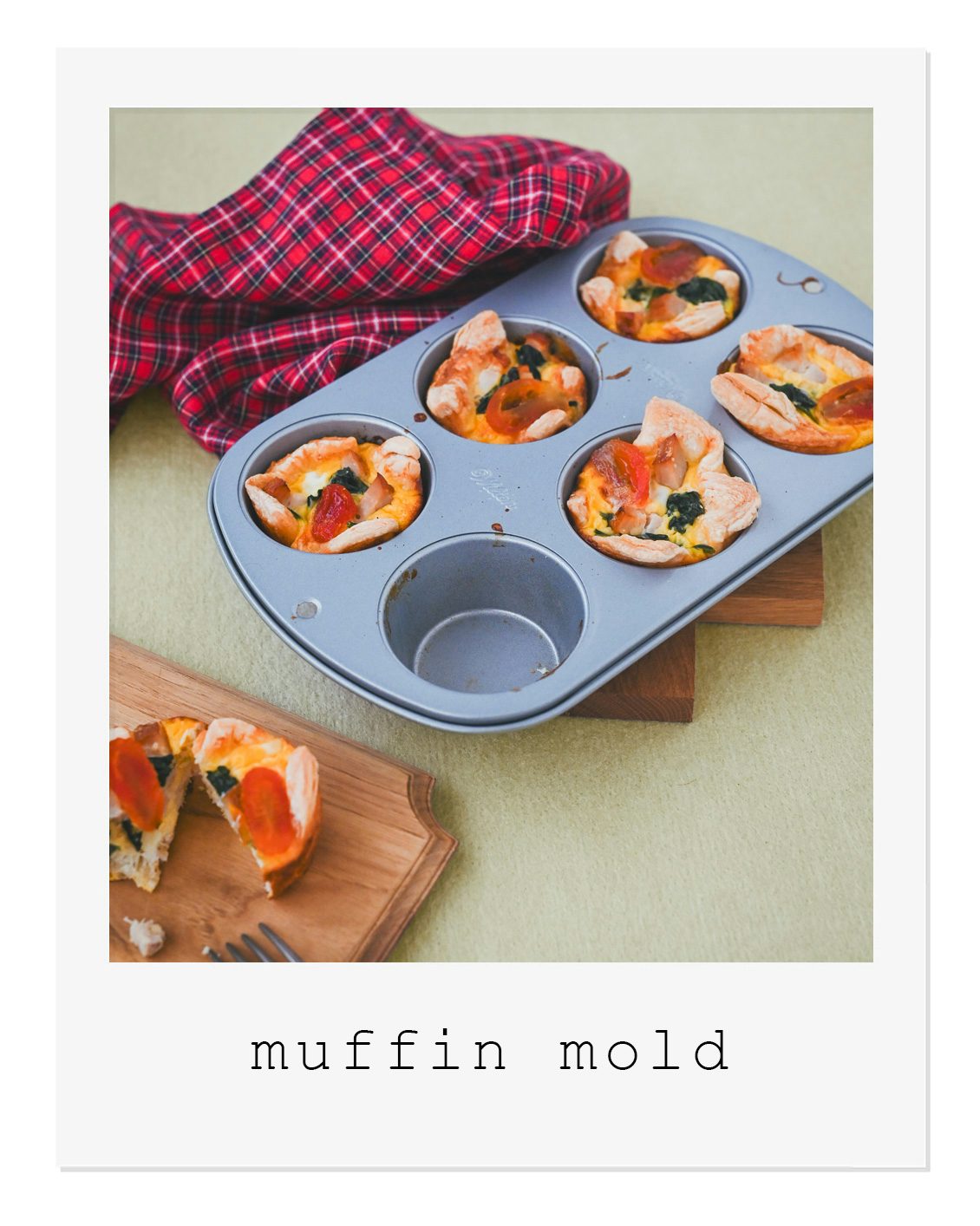 我が家は25日にごちそうを食べるので、今日の夕飯はふつうに……と思ったけれど、やっぱり気分を味わいたくて、Wiltonのマフィン型と冷凍パイシートでキッシュづくり。