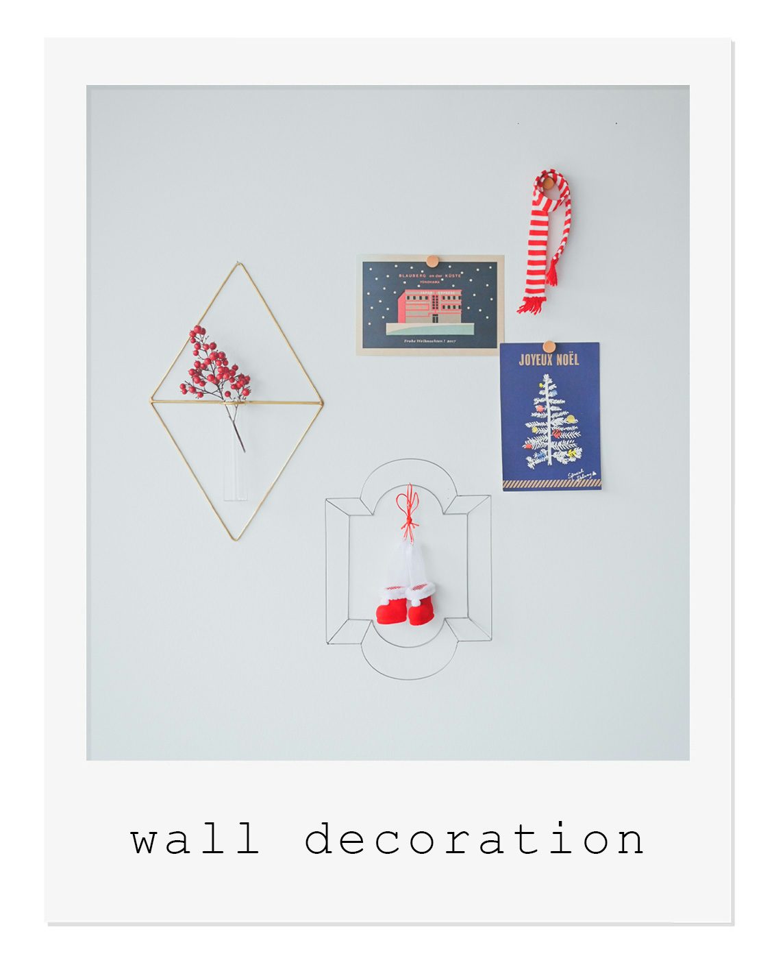 真鍮の一輪挿しには赤い実をさして。ワイヤーフレームやマグネットピンを使えば、お店でもらうクリスマスのショップカードや、ちょっとした小物ひとつでも立派な壁飾りに。