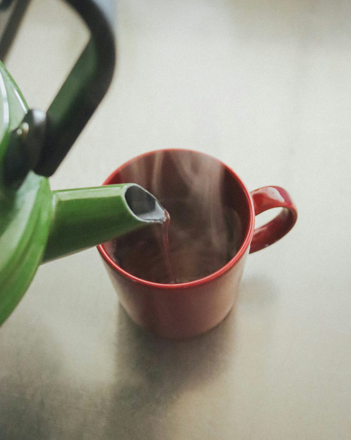 やかんの湯気と、ティーマのマグ。この組み合わせにも癒されます。