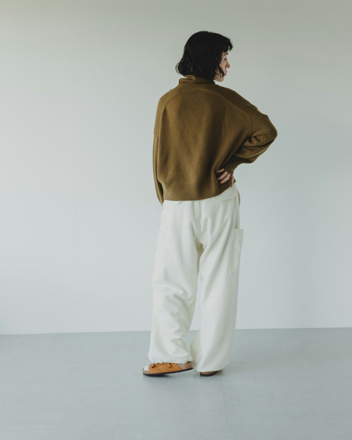 程よく起毛感があり、動くたびにしなやかに揺れる生地の表情は、カジュアルになりすぎず、品の良さを感じさせてくれます。