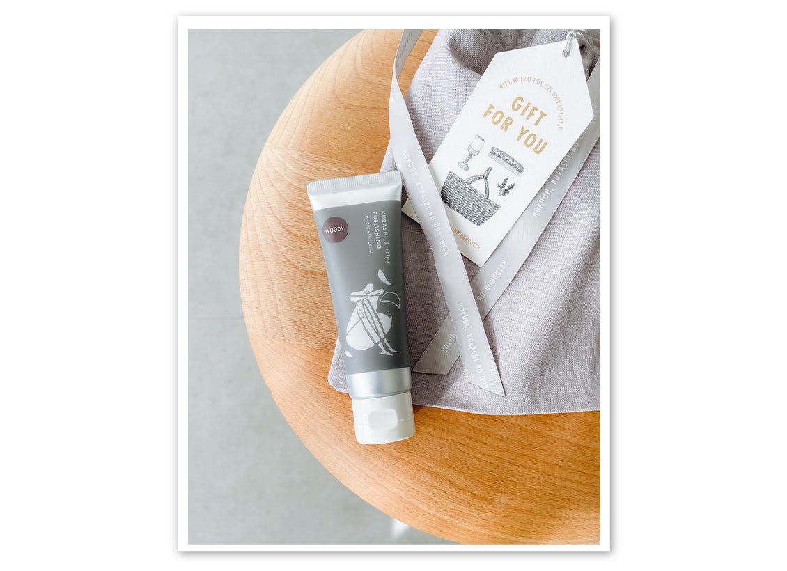 香りは2種類あるのですが、甘さ控えめのスパイシーな香りが好きで、こもれび(ウッディ)を選ぶことが多いです。手につけたときに、ふわーっと感じる香りに癒されます。ちょっとしたお礼や、いつも頑張っている方に贈るのにぴったりなアイテムです」