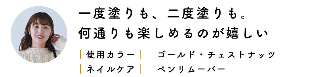 同じブラウンでもニュアンス違いで楽しめるところが、とてもいいなと感じています。