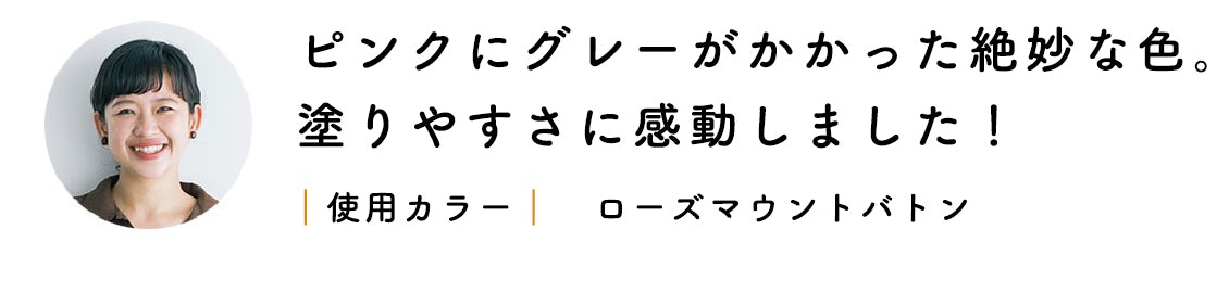 「私が試したのは、ローズマウントバトン。絶妙なくすみ色のピンクにグレーが入っていて、ボトルで見える色と同じ発色だったのが嬉しいです。