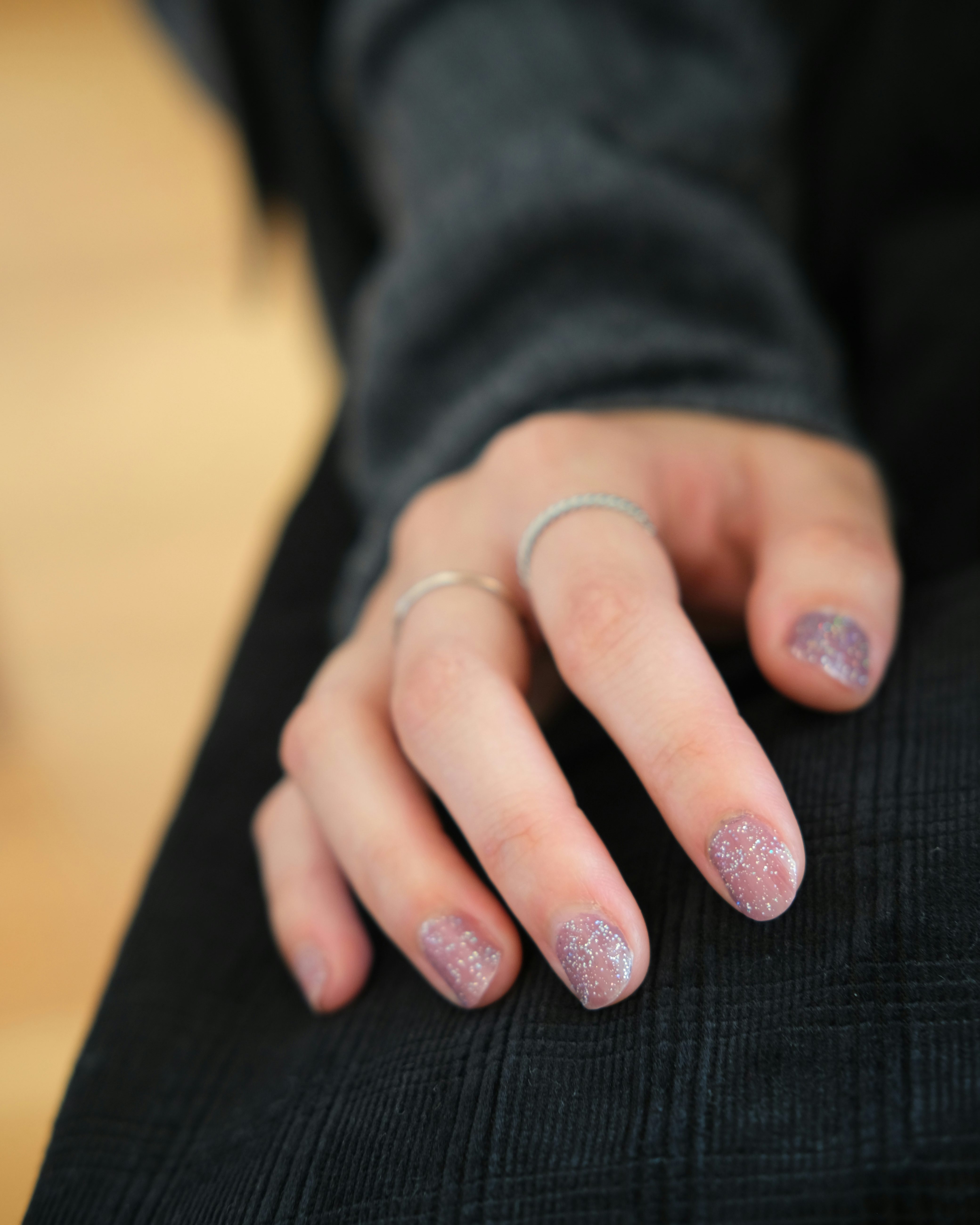自爪の色にうっすらと繊細なラメが広がって、指先がツヤっとして見えるのが素敵。二度塗りすると、きらめきが増してより華やかな印象になりました。馴染みが良いので、ネイルがうまく塗れるか不安な方にも、取り入れやすいアイテムだなと感じます」