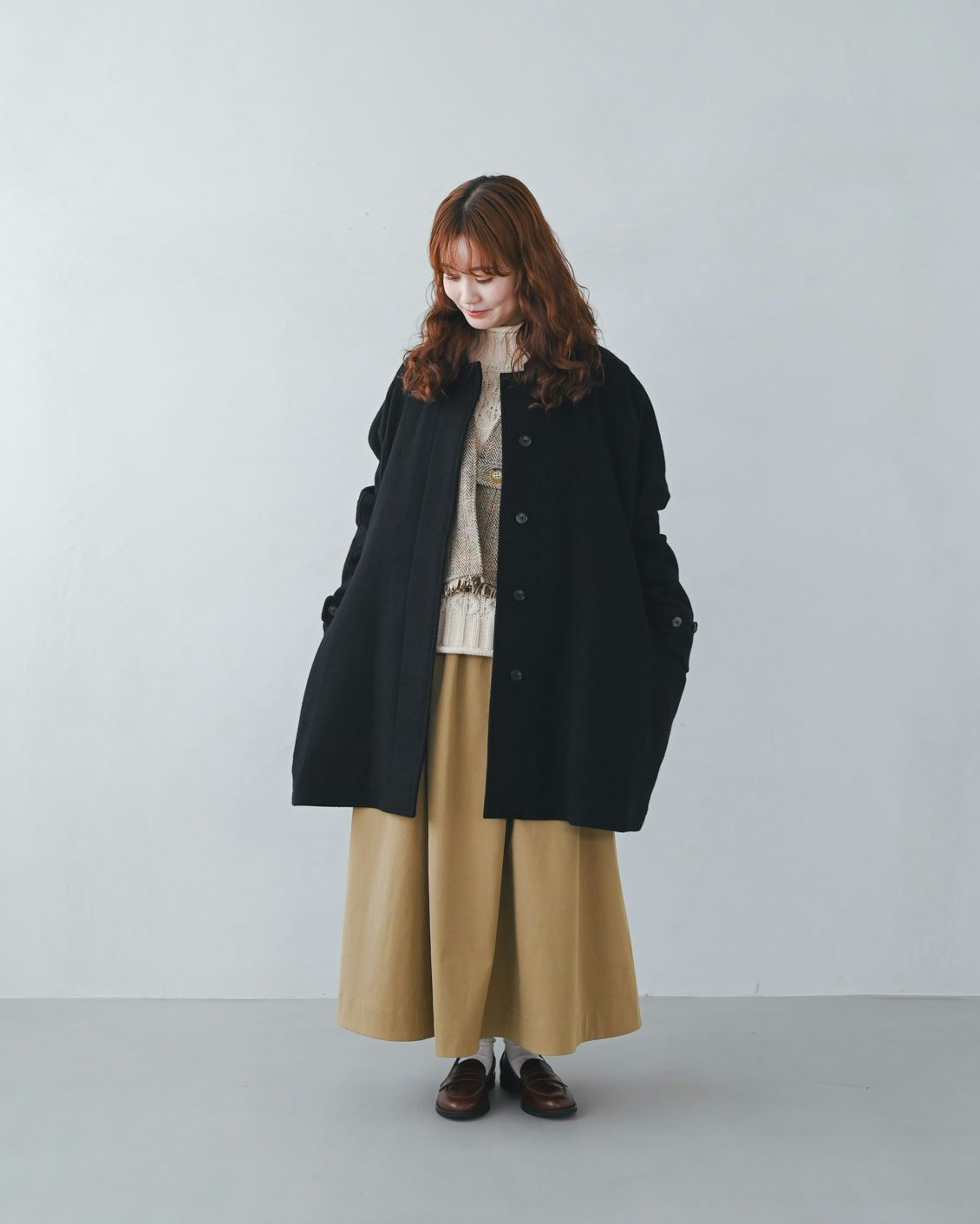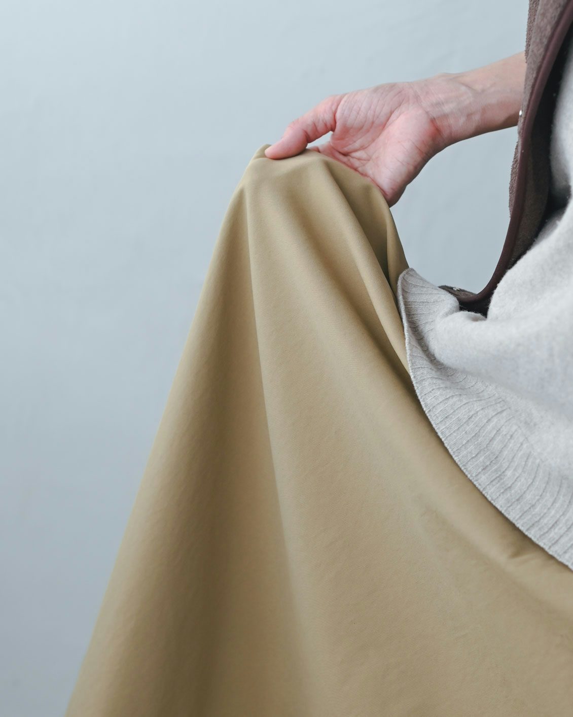「ハリ感のあるたっぷりの生地で、凛とした印象のフレアなんですね。