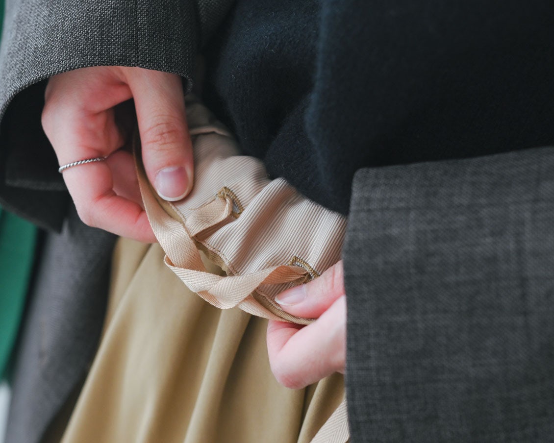 腰まわりのボリュームが抑えられて、後ろ姿もきれいに見せてくれて。鏡を見て嬉しくなりました」